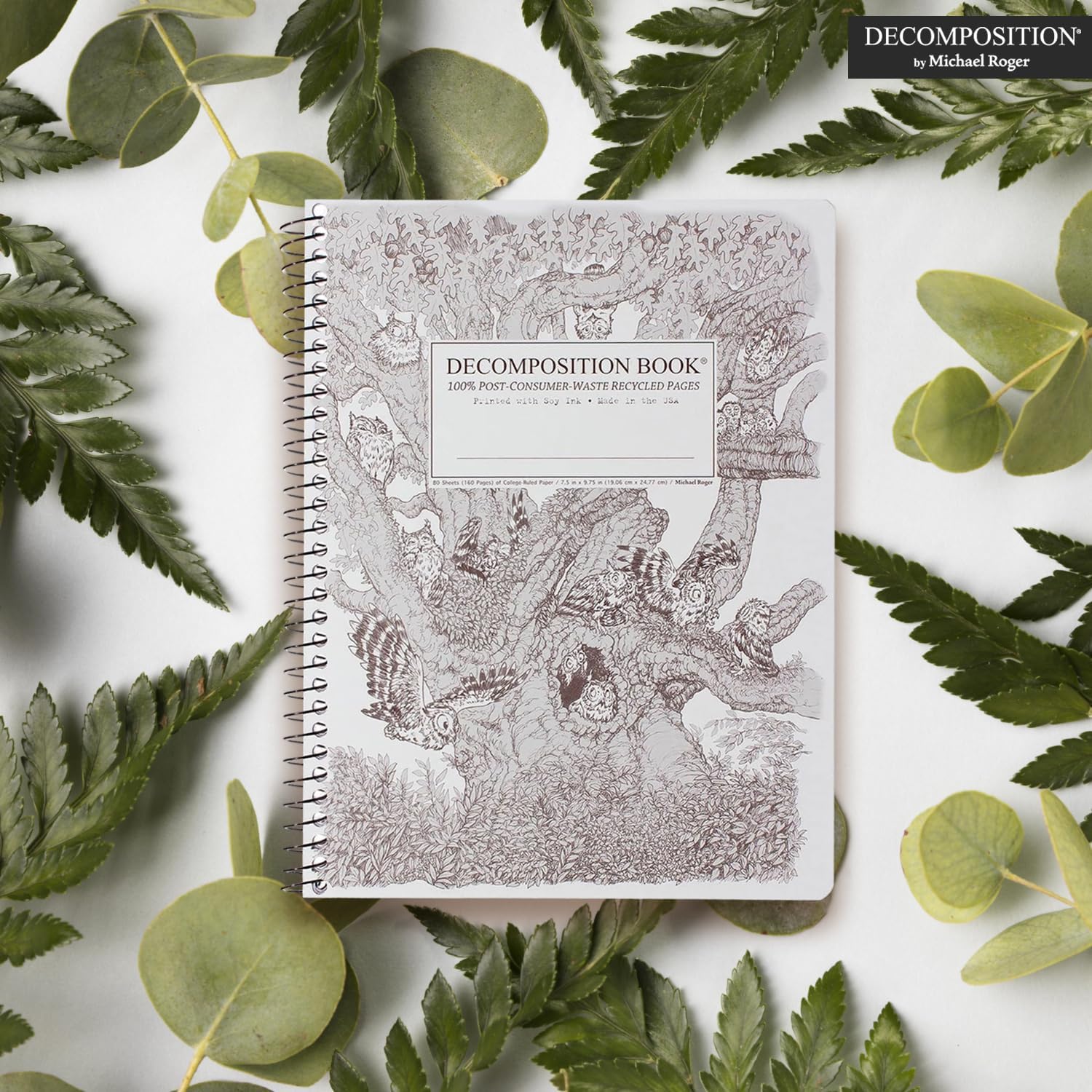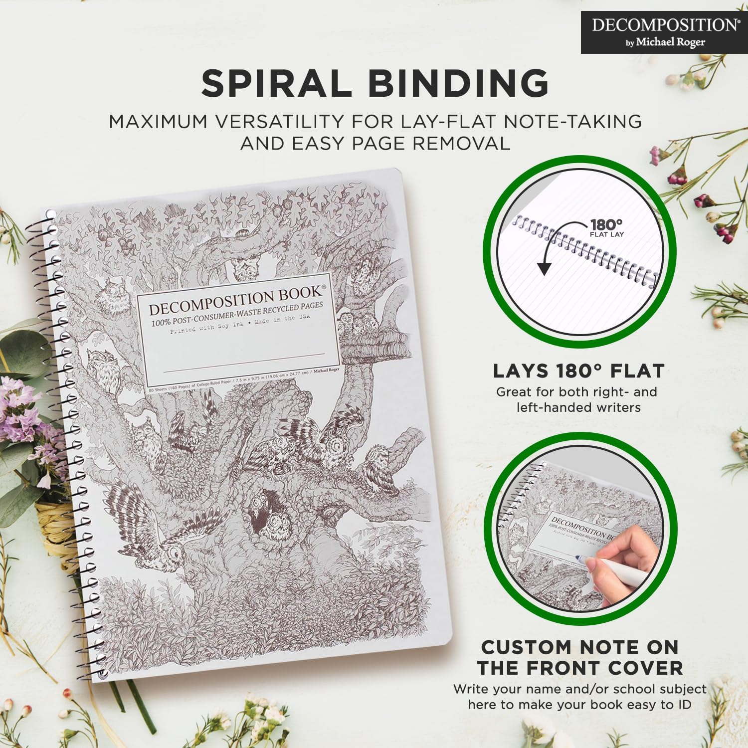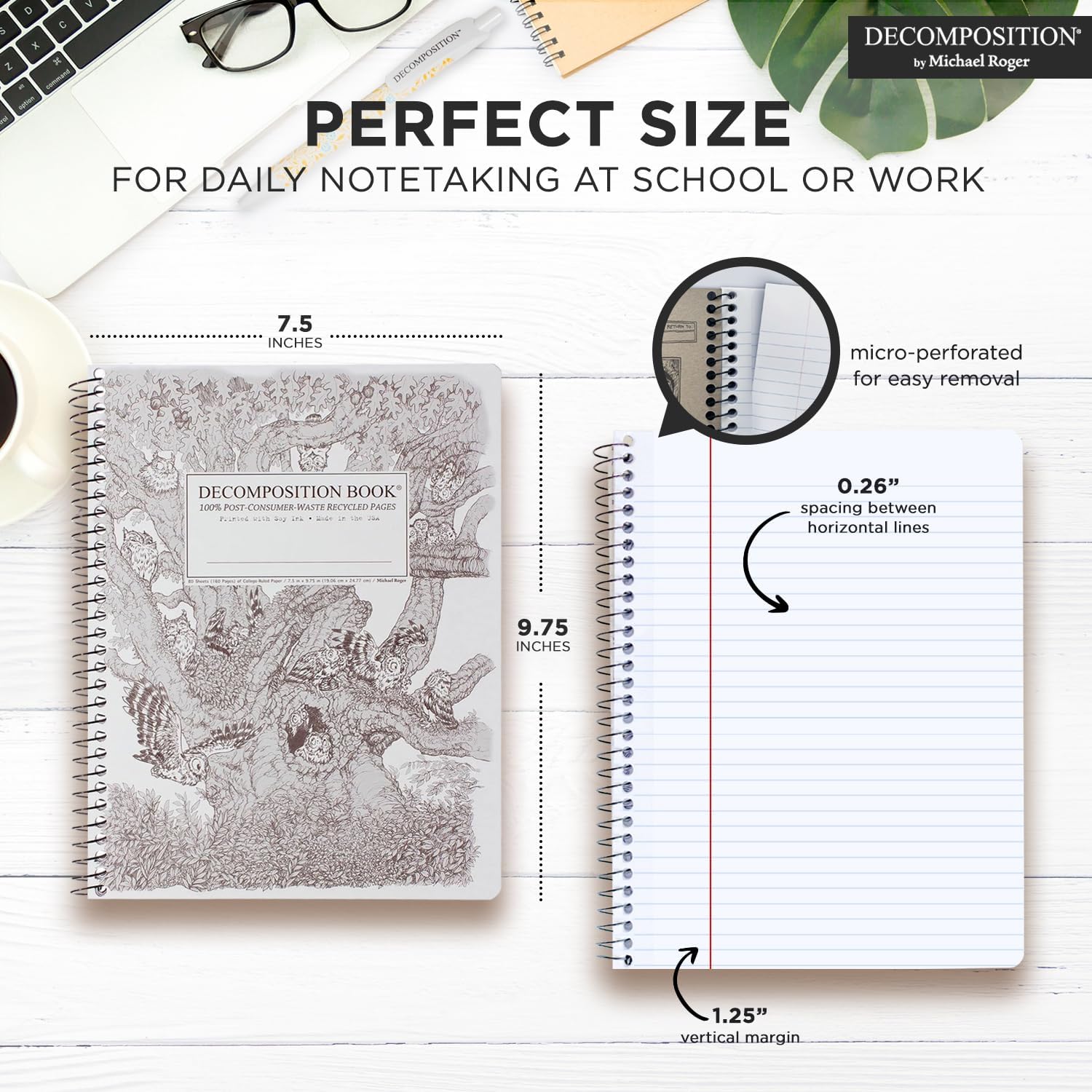 Decomposition Screech Owls College Ruled Spiral Notebook - 9.75 x 7.5 Journal with 160 Lined Pages - 100% Recycled Paper - Cute Notebooks for School Supplies, Home & Office - Made in USA