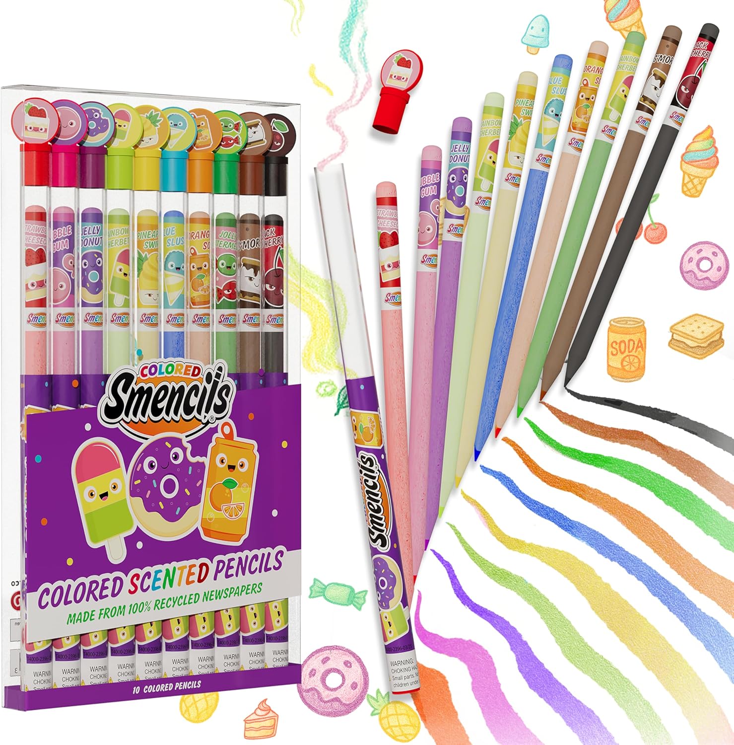 Colored Smencils - Patented Gourmet Scented Colored Pencils made from Recycled Newspapers, 10 Count, Gifts for Kids, School Supplies, Classroom Rewards