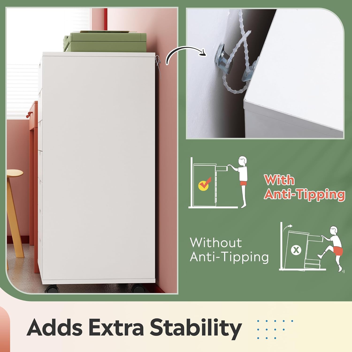 - EASY TO MOVE: The dresser equipped with 4 casters, 2 front casters can be locked. Casters can also be removed for stationary placement.