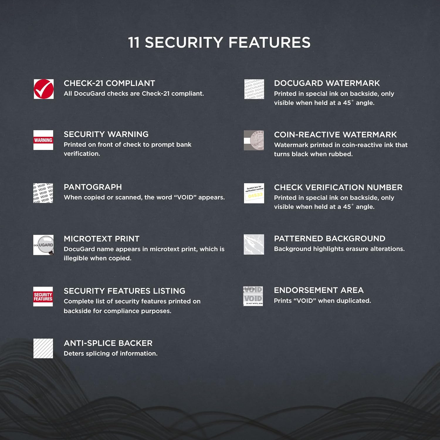 - DocuGard gold marble bottom business checks utilize 11 comprehensive security features recommended by the National Check Fraud Center and are ANSI compliant