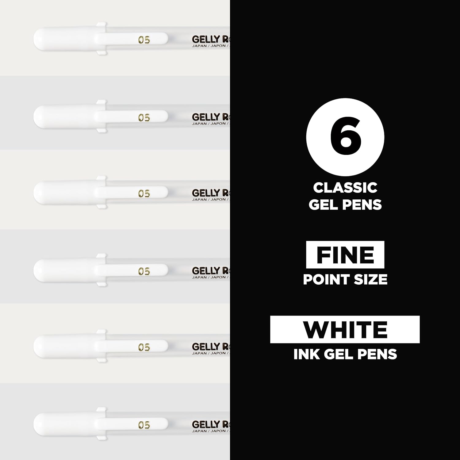 SAKURA Gelly Roll Gel Pens - Fine Tip Ink Pens for Journaling, Art, or Drawing - Classic White Ink - All are Tip Size Fine 05-6 Pack
