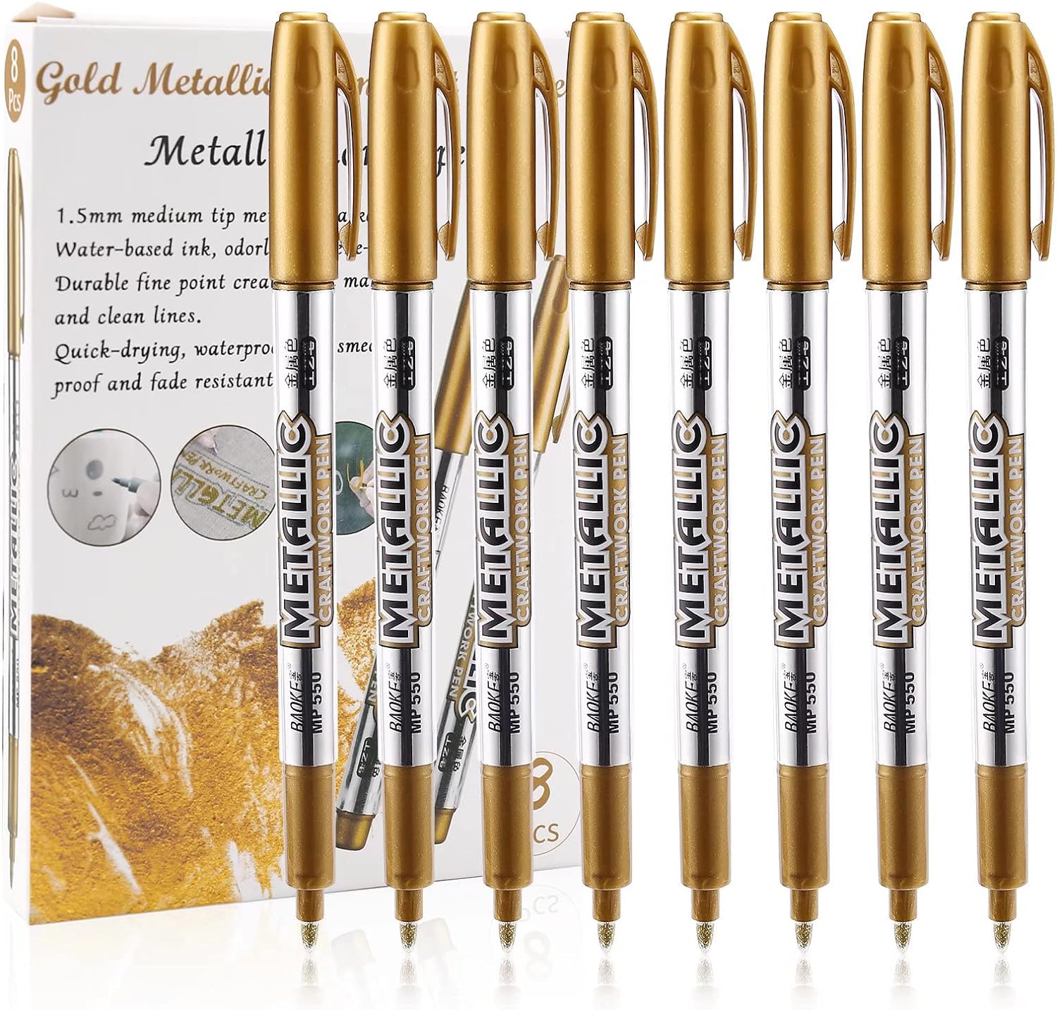 LOONENG Gold Marker Metallic, Fine Point Gold Markers Permanent Metallic for Adult Coloring, Black Paper, Scrapbook, Artist Illustration, Crafts, Gift Card Making, Fabric, DIY Photo Album, 8 Count