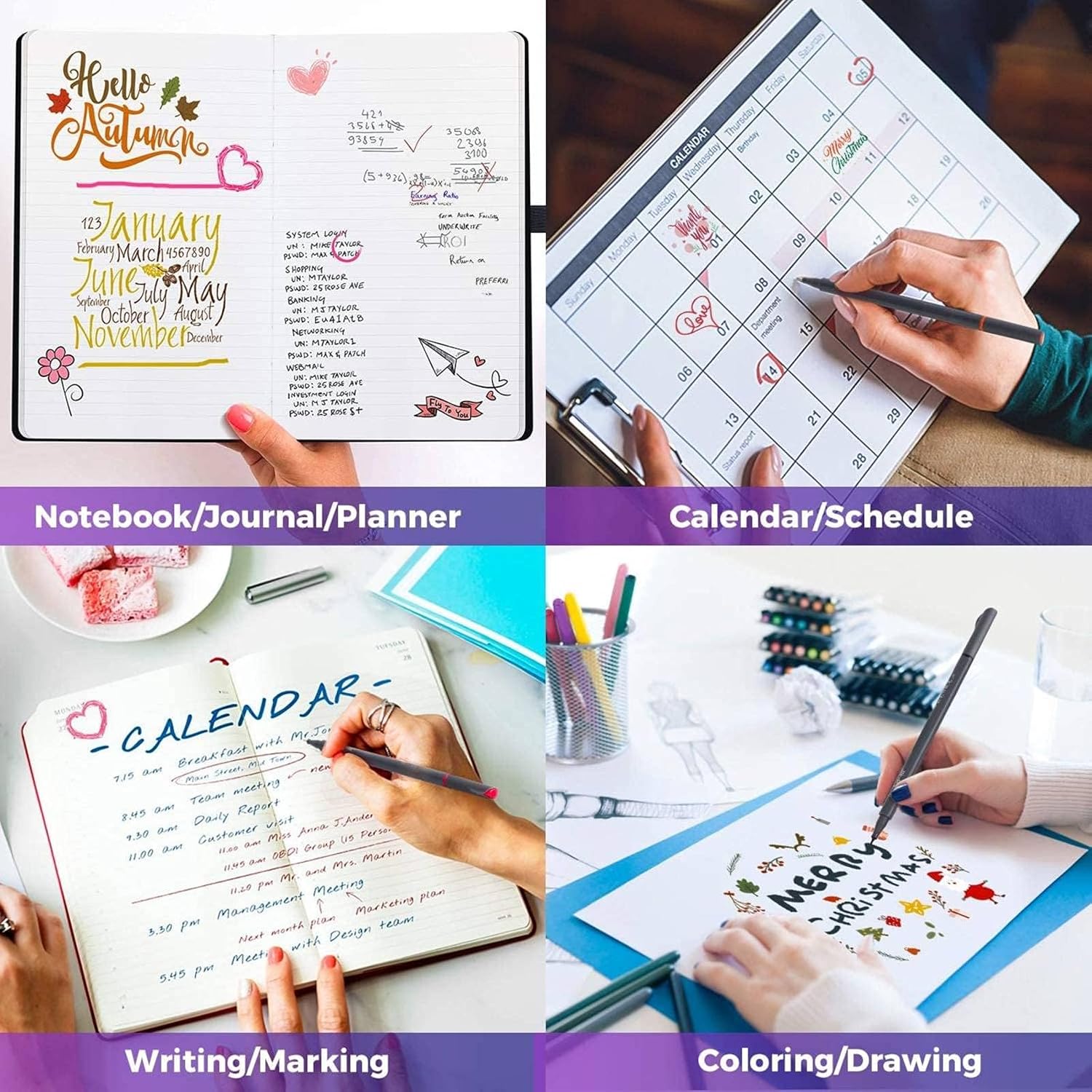 - SMOOTH WRITING colorful fine line marker pens with Metal fine tipped and outstanding super smooth performance in all areas of journaling, planner, drawing lines & details, writing, sketching, art coloring, note taking, calendar, art projects, comfortable to write.