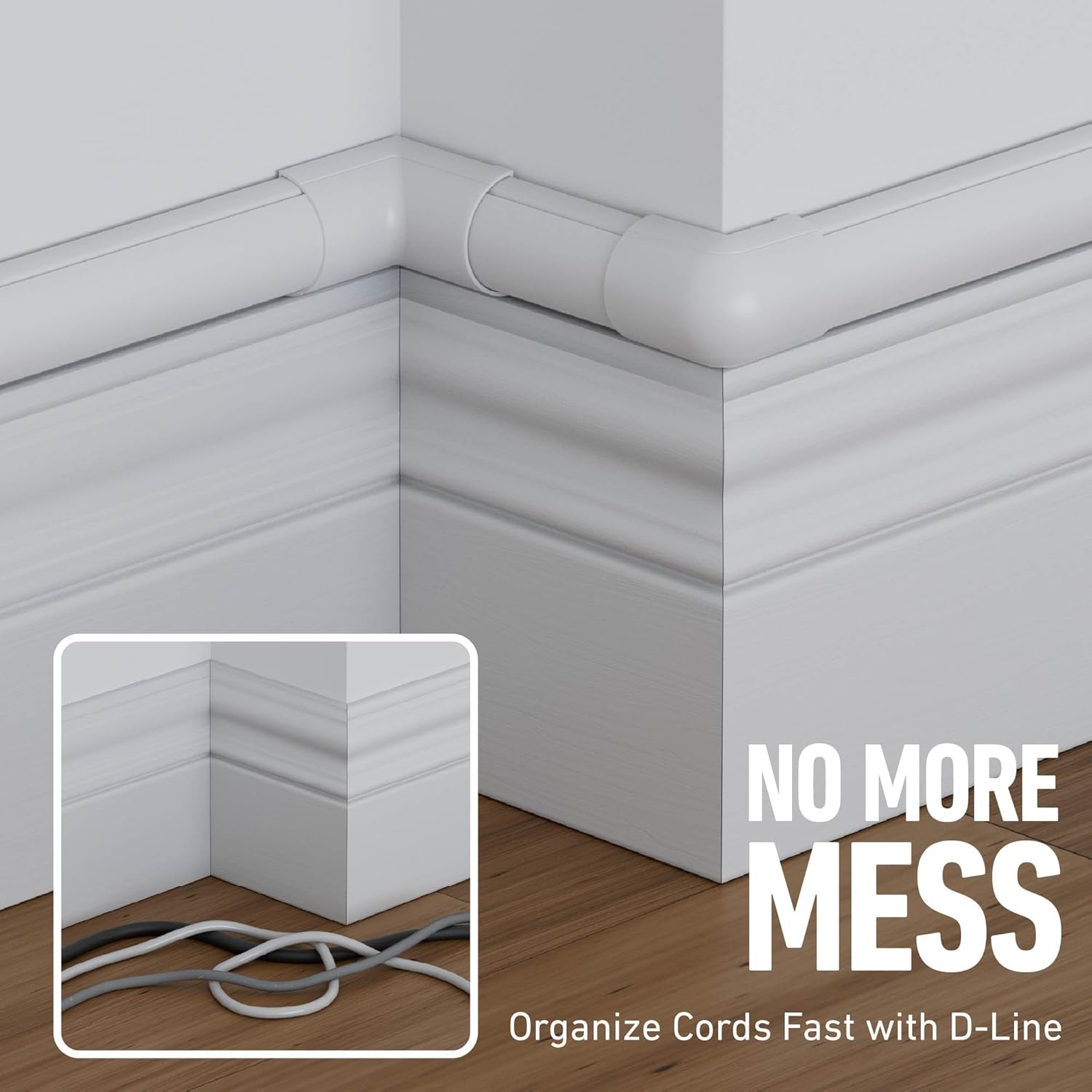 - Stylish design! D-Line On Wall Cord Covers have a decorative half round profile, for a superior finish. Great for hiding wall mounted TV wires, with the profile subtly blending with decor. D-Line Raceway is also used for organizing cords above baseboards, with D-Line appearing as the natural top section of the baseboard. Longer 39-inch lengths supplied per pack, require less connectors versus shorter lengths, to ensure a neat appearance can always be maintained.