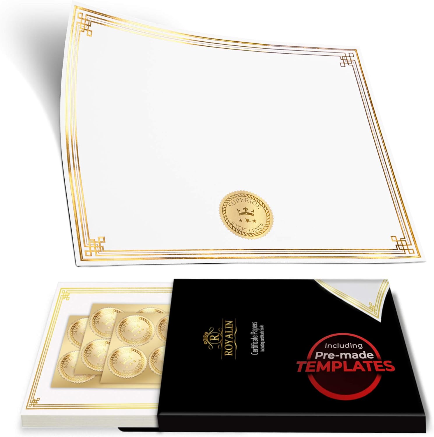 - Recipients will beam with pride. Accompanied by exclusive gold seals, Royalin's gold certificate paper brings sincere appreciation to every certificate ceremony.