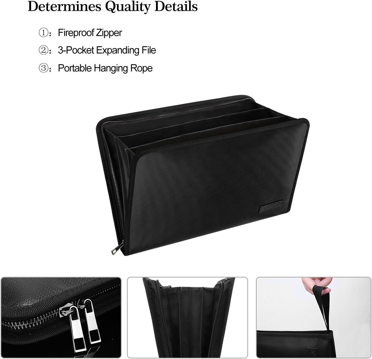 - WIDE RANGE OF APPLICATIONS: Fireproof zipper added security and safe transport.It's very durable.Not only can you put your file folder at home, office, car,it's also a good decision to put it in the safe box. You can feel 100% confident that your important information is in a safe place.