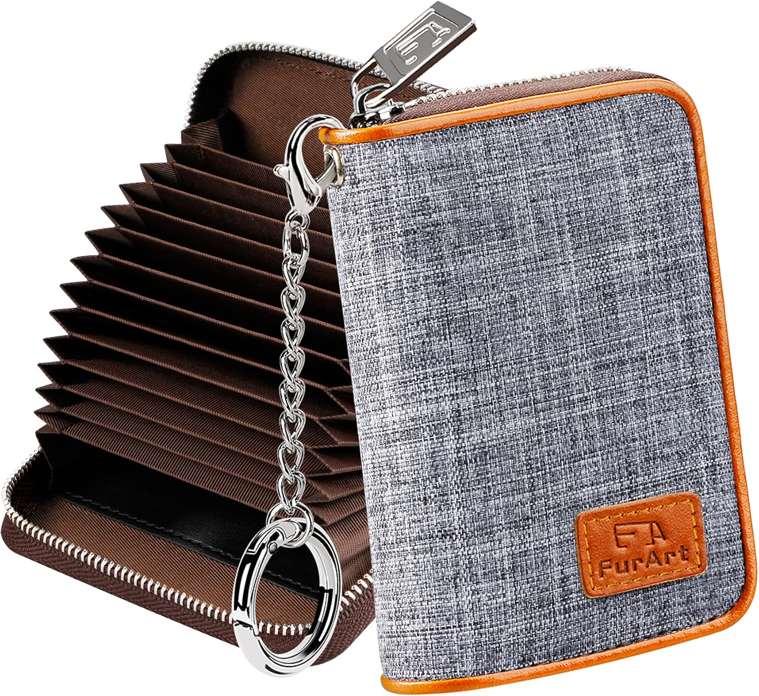 FurArt Zipper Wallet Women, RFID Blocking Credit Card Wallet, Business Card Holder, Compact Size KeyChain Wallet