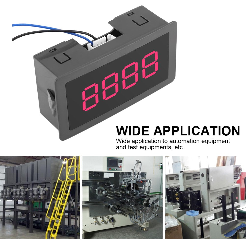 FTVOGUE Auto Digital Counter DC LED Digital Display 4 Digit 0-9999 Up/Down Plus/Minus Panel Counter Meter with Cable(Red)