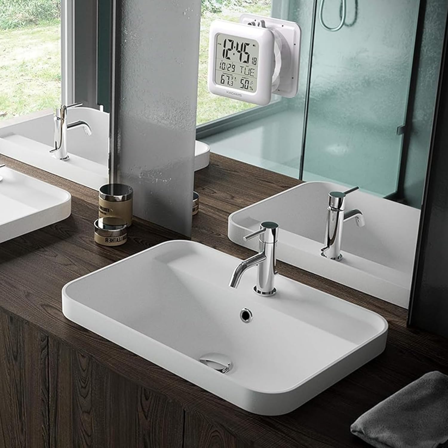 - 【Waterproof Design】 With its IP 24 rating, this digital wall clock is fully waterproof, making it the perfect addition to your bathroom. It can withstand water splashes and humidity, ensuring it remains functional and reliable even in wet conditions. The waterproof bathroom clock handle the bathroom's humid environment while serving as a valuable addition to your kitchen, laundry room, spa, or any living area in your home.