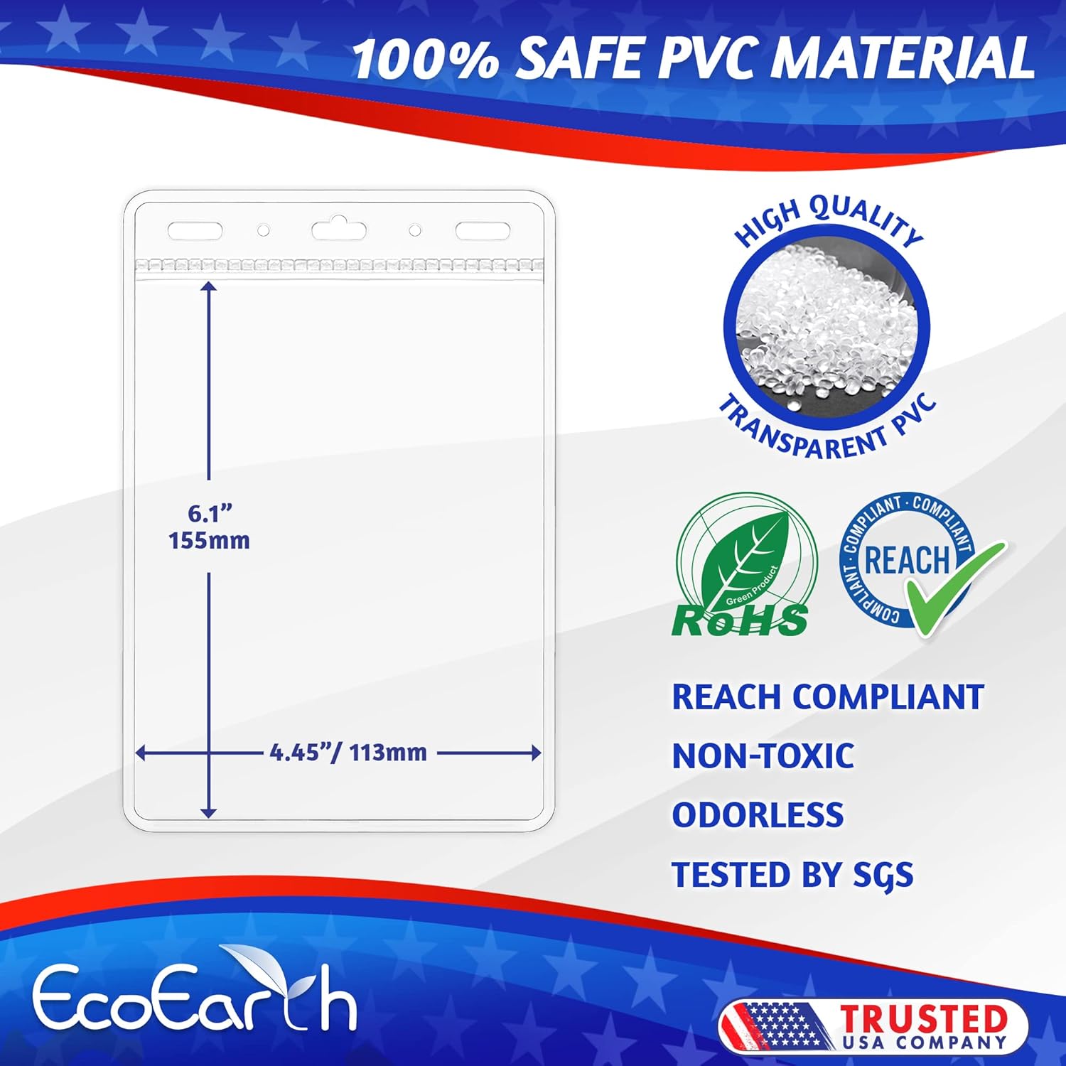 EcoEarth Passport & Identification Card Holders with Soft Edge (Clear, 4x6 Inch, 100 Pack), Extra Large Vertical ID Holder, Zipperless Plastic Name Badge Holders