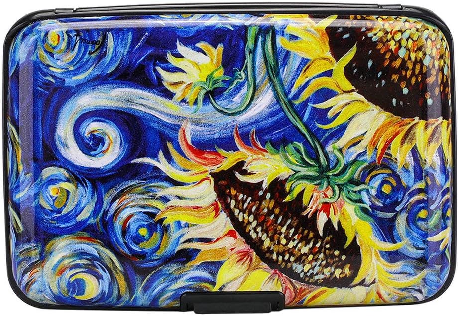 ELFISH Mini RFID Aluminum Wallet Credit Cards Holder Business Card Case Metal ID Case for Men Women (Sun flower)