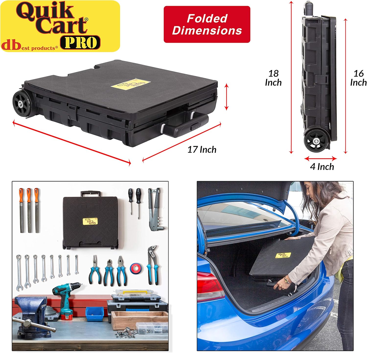dbest products Quik Cart Pro Wheeled Rolling Crate Teacher Utility with seat Heavy Duty Collapsible Basket with Handle, Black