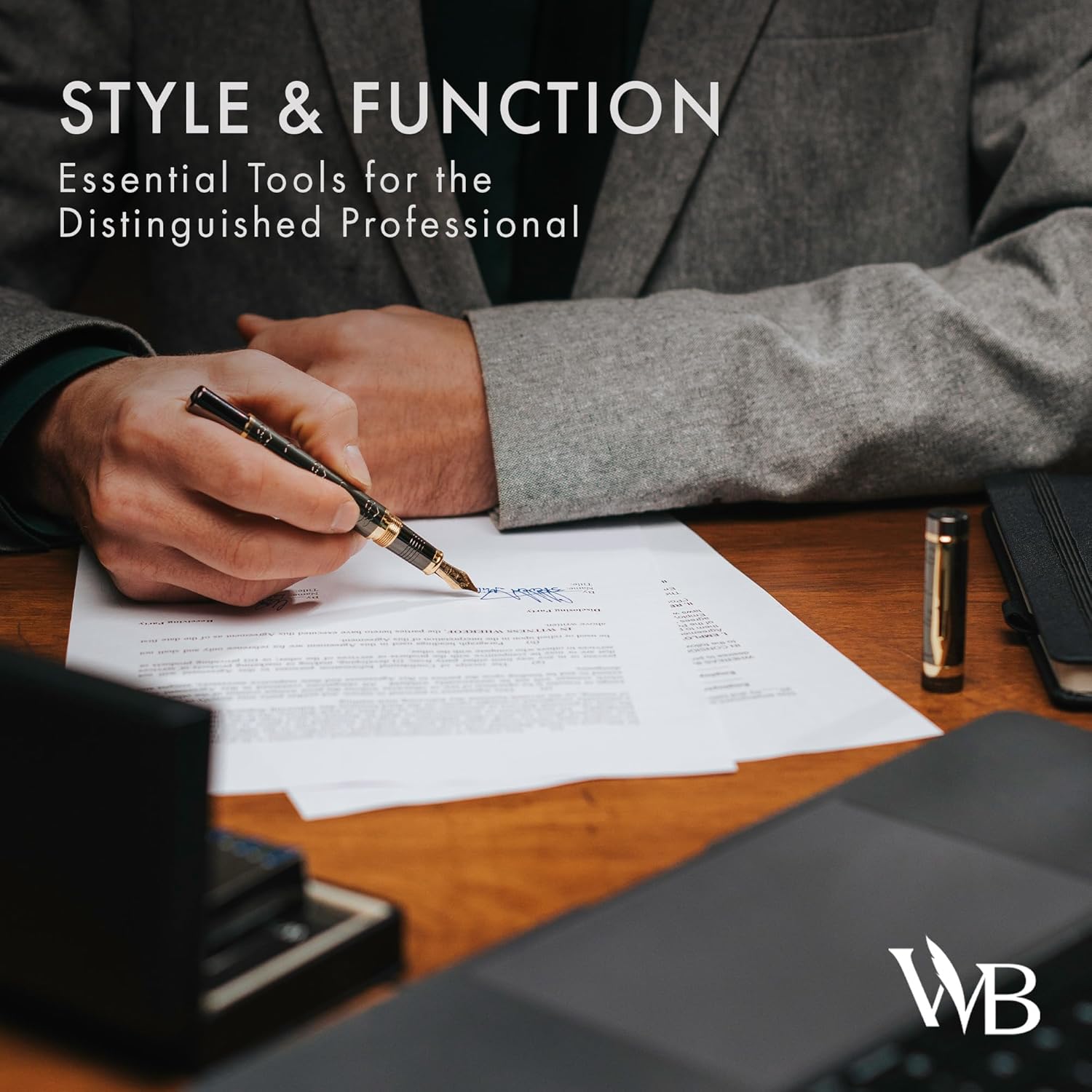 Wordsworth & Black Primori Fountain Pen Set [Gunmetal Gold]; Medium Nib, Gift Case, 24 Ink Cartridges, Refill Converter, Manual; Journaling, Calligraphy, Smooth Writing Pens; Left and Right Handed