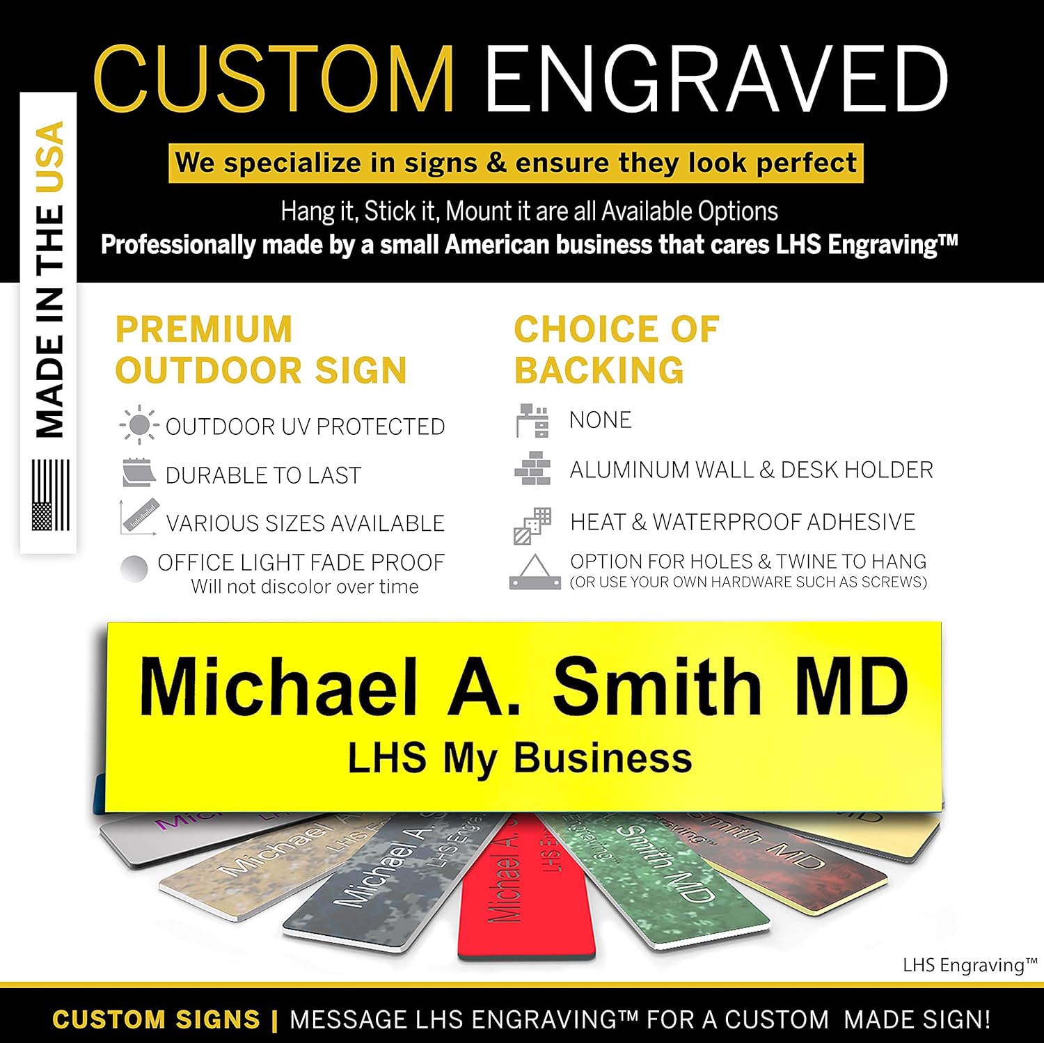 Door Name Plate Personalized for Office Yellow Plastic Name Plate Black Letters - Made in USA 2x6 B4