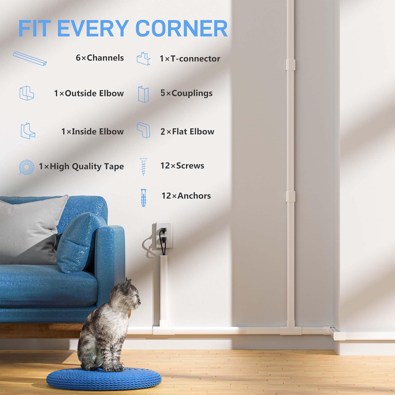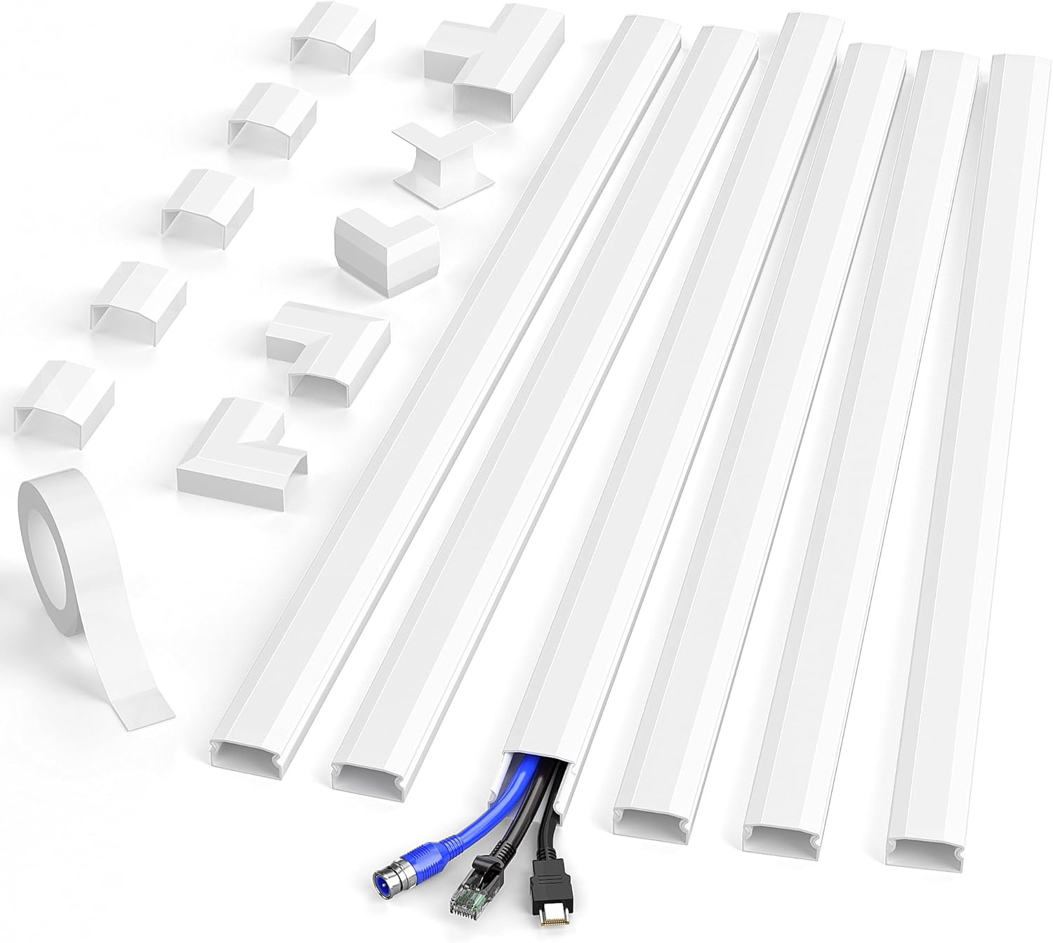 - Meets the Needs of Most Households Cable Organization: The medium-size cord hiders are ideal for hiding 2-3 TV/Audio/Network cables, such as HDMI cables, Cat6 Ethernet cables, optical cables, and USB cables. The Delamu snap-on design cord covers kit has 6 cable raceways, 15.7 inches long each. The cable hider is 94.5 inches long in total. There are 10 connectors (to fit each corner), 12 screws and 12 anchors, and 1 adhesive tape