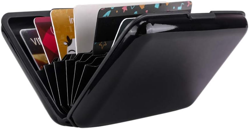 - Latches safely and securely when not in use. Rounded corner wouldn't damage on your clothes. With 7 accordion Slots, Capacity for up to more than 9 credit cards or more than 21 business cards.