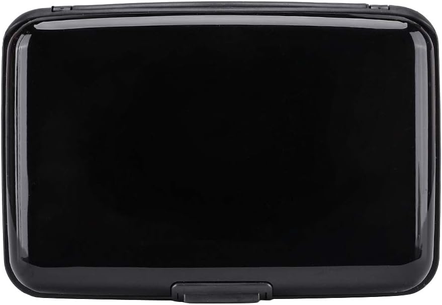 - This credit card holder is made of aluminum shells, ABS plastic frame and clasp closure, RFID-blocking will protect your card data from RFID scanners and readers.