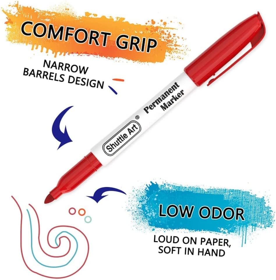 - Recommended Uses For Product : Shuttle Art permanent markers are ideal for detailed marks,drawing, writing, coloring, scrap booking, doodling, filling in paper, plastic, metal and most other surfaces that allows you to show off your creative side. Shuttle Art permanent markers are ideal for detailed marks,drawing, writing, coloring, scrap booking, doodling, filling in paper, plastic, metal and most other surfaces that allows you to show off your creative side.