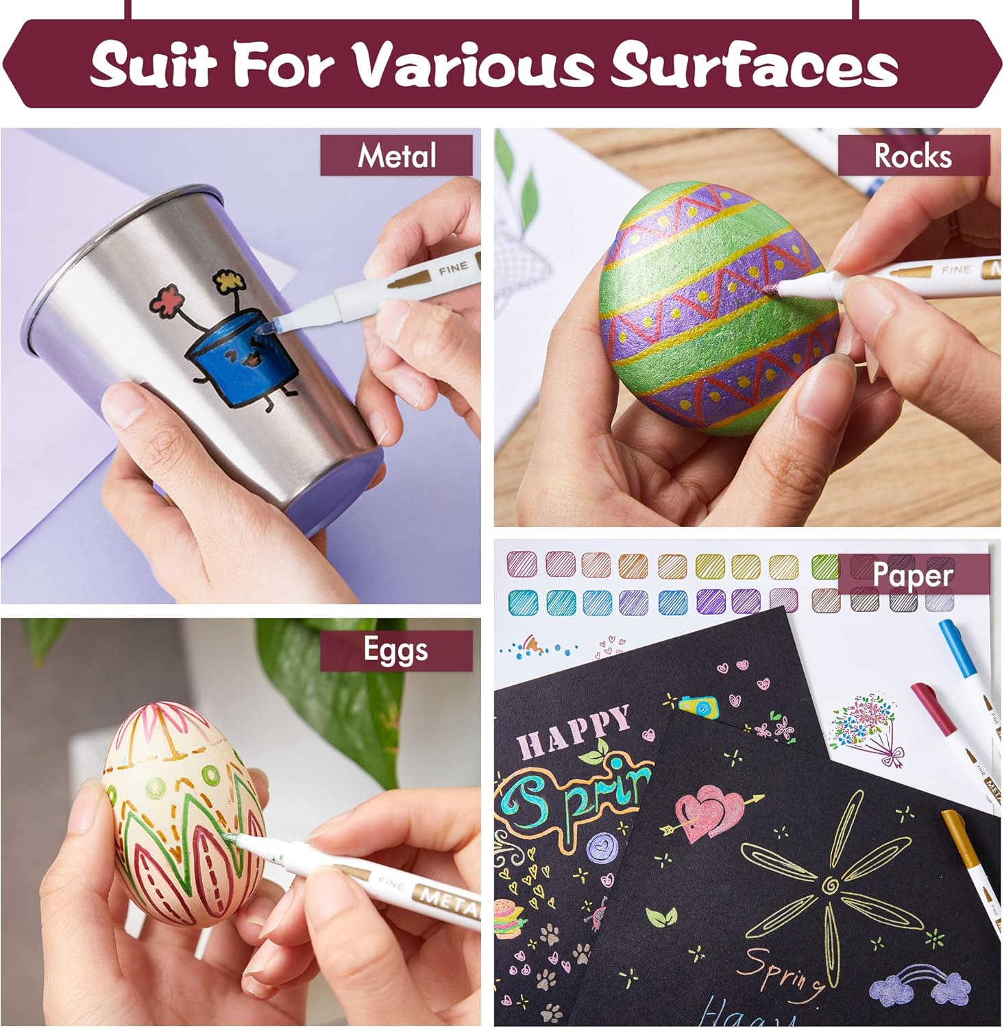 - 【Fine Tip Metallic Markers】: The fine tip gives 1.0mm consistent line, which is great for writing, drawing and coloring. Ideal for finishing the artwork. Our metallic markers are the perfect choice for black paper painting, diy craft gifts, rock painting and cards making.