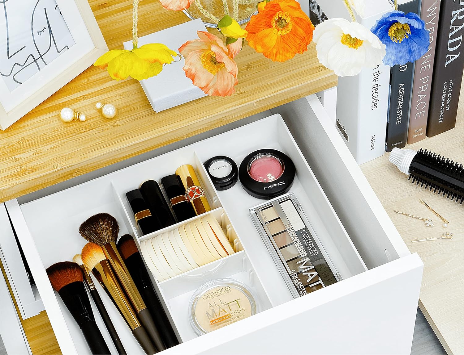 - Organized & Efficient: Our tray will allow for you to save space and keep an organized and neat feel for each of your drawers, uncluttering your pencils, pens, and others office accessories. Great solution for nail clippers, brushes, skincare bottles, perfume bottle, washes.