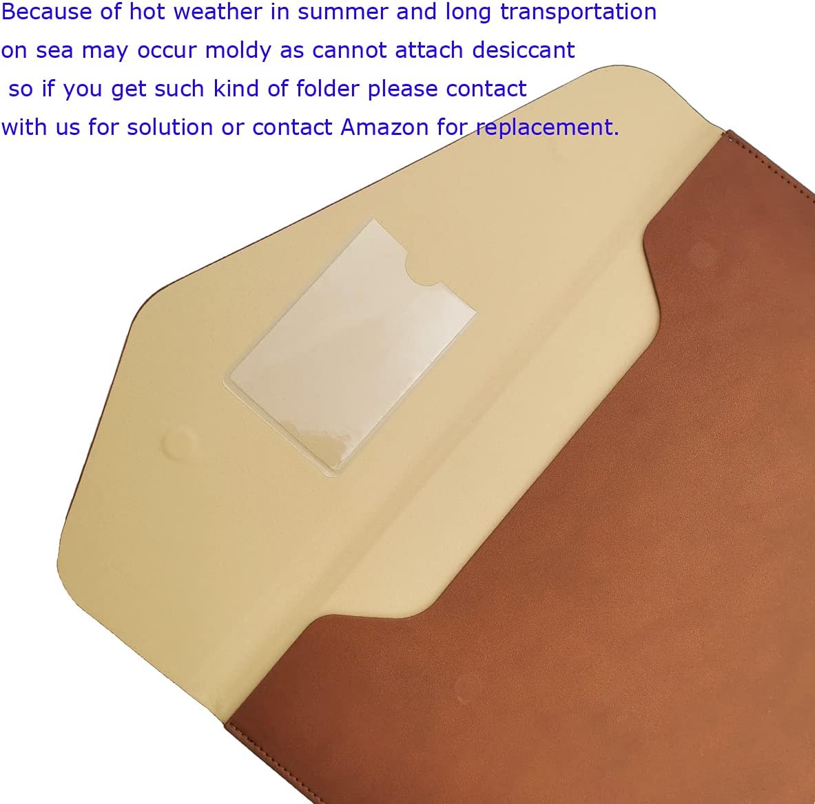 - HIQH QUALITY: This envelope style folder uses environmental-friendly and premium thick PU leather and made by fine thread sewing. The file surface has no deformation, no fading, non-sticky, wear-resistant and protects your documents well for long time.