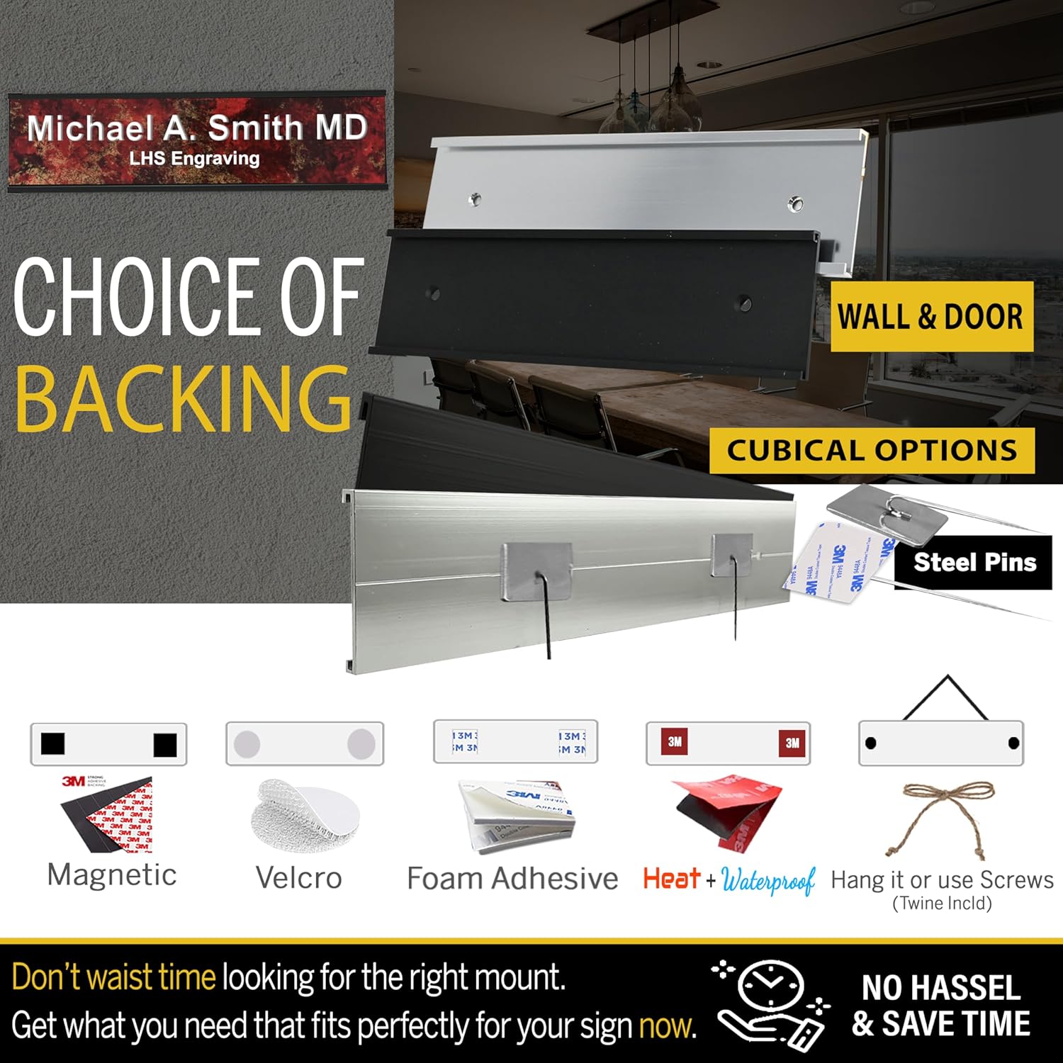 - π‘ Click Personalize: Add 3 lines of text | Option to add a desk, wall or a door holder or choose adhesive, hanging, cubicle pins, or all weather adhesive option