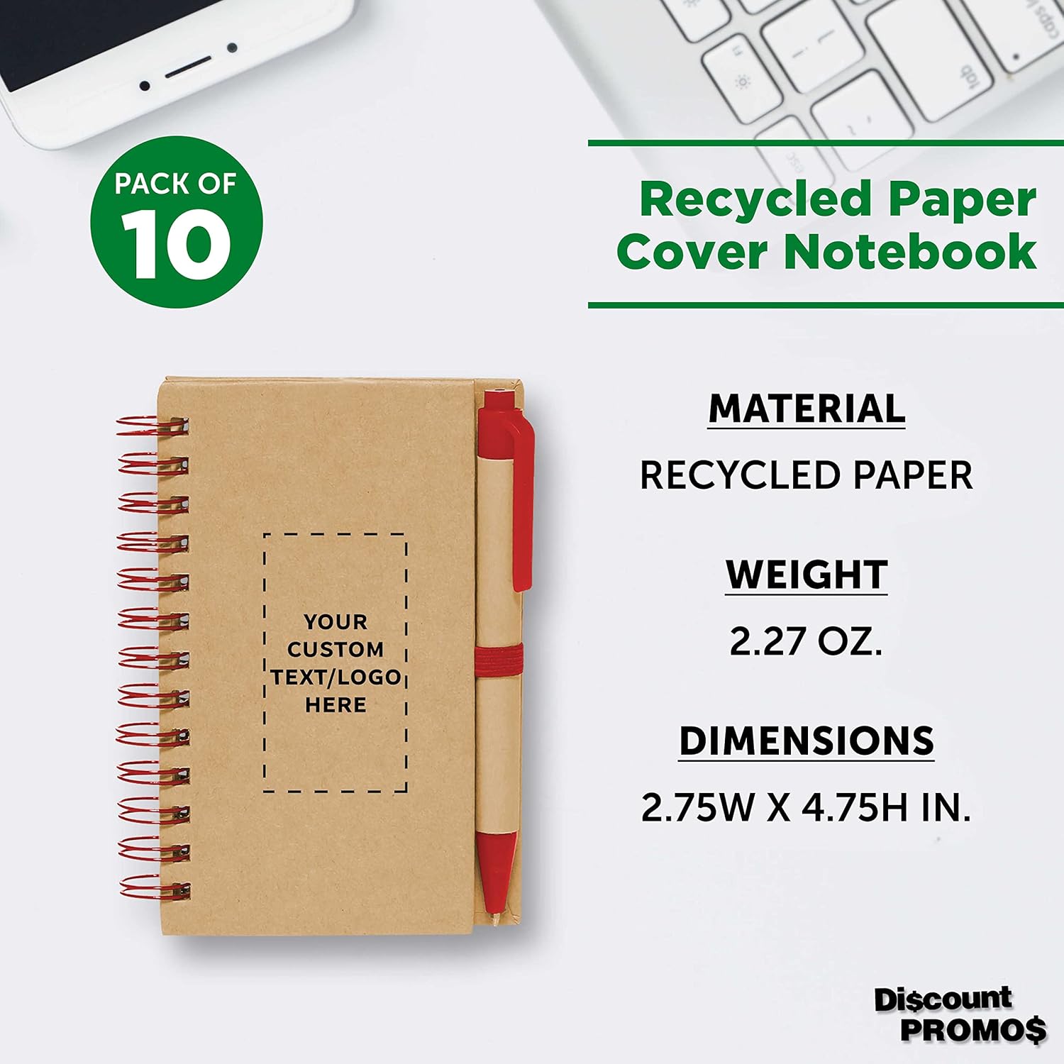 Custom Mini Spiral Notebooks with Black Ink Pens Set of 10, Personalized Bulk Pack - Perfect for School, Office, Business, Home - Red