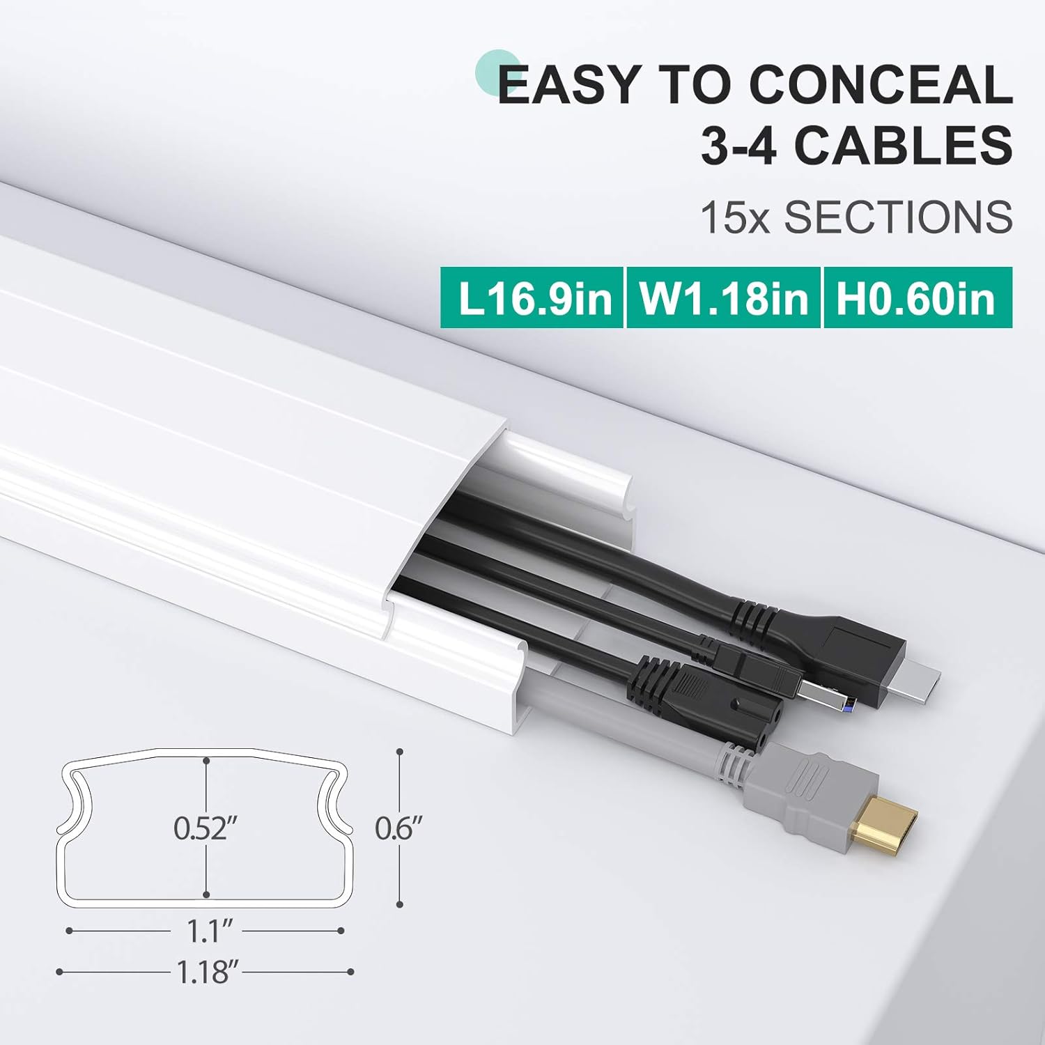 - Perfect Size for Hiding 3-4 Cables: Make your cable mess a thing of the past with the Delamu cord cover wall system that has everything packed for you to get the job done effortlessly. Depending on the cable size, you can hide 3+ cables with our cable hider at 1.18in wide and 0.6in high, the cover snaps on and off easily to add/remove cables
