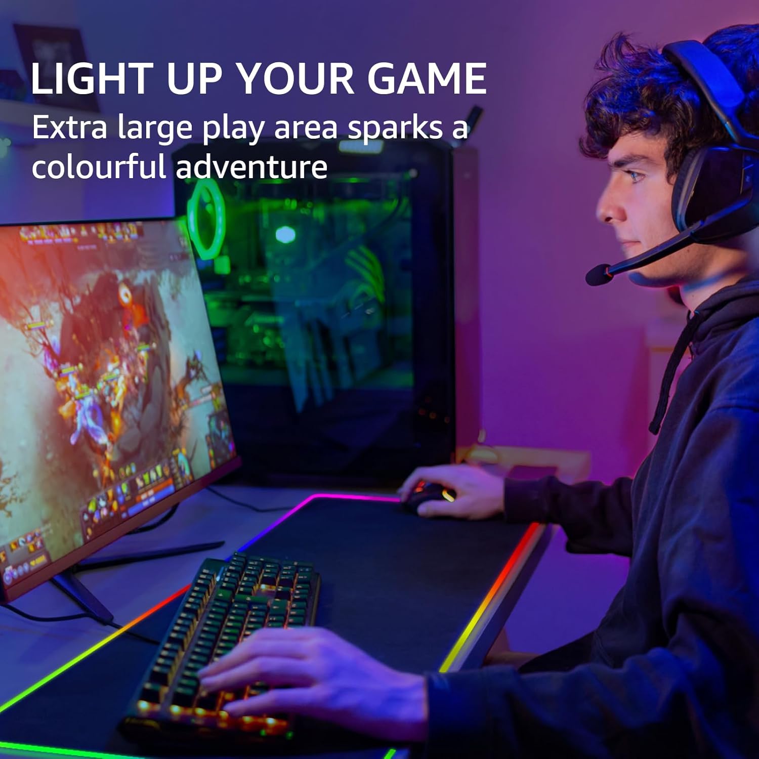 KTRIO RGB Large Gaming Mouse Pad with Stitched Edges, Superior Micro-Weave Cloth, Non-Slip Base, Water Resist Coating, 31.5 x 11.8 in, RGB Black