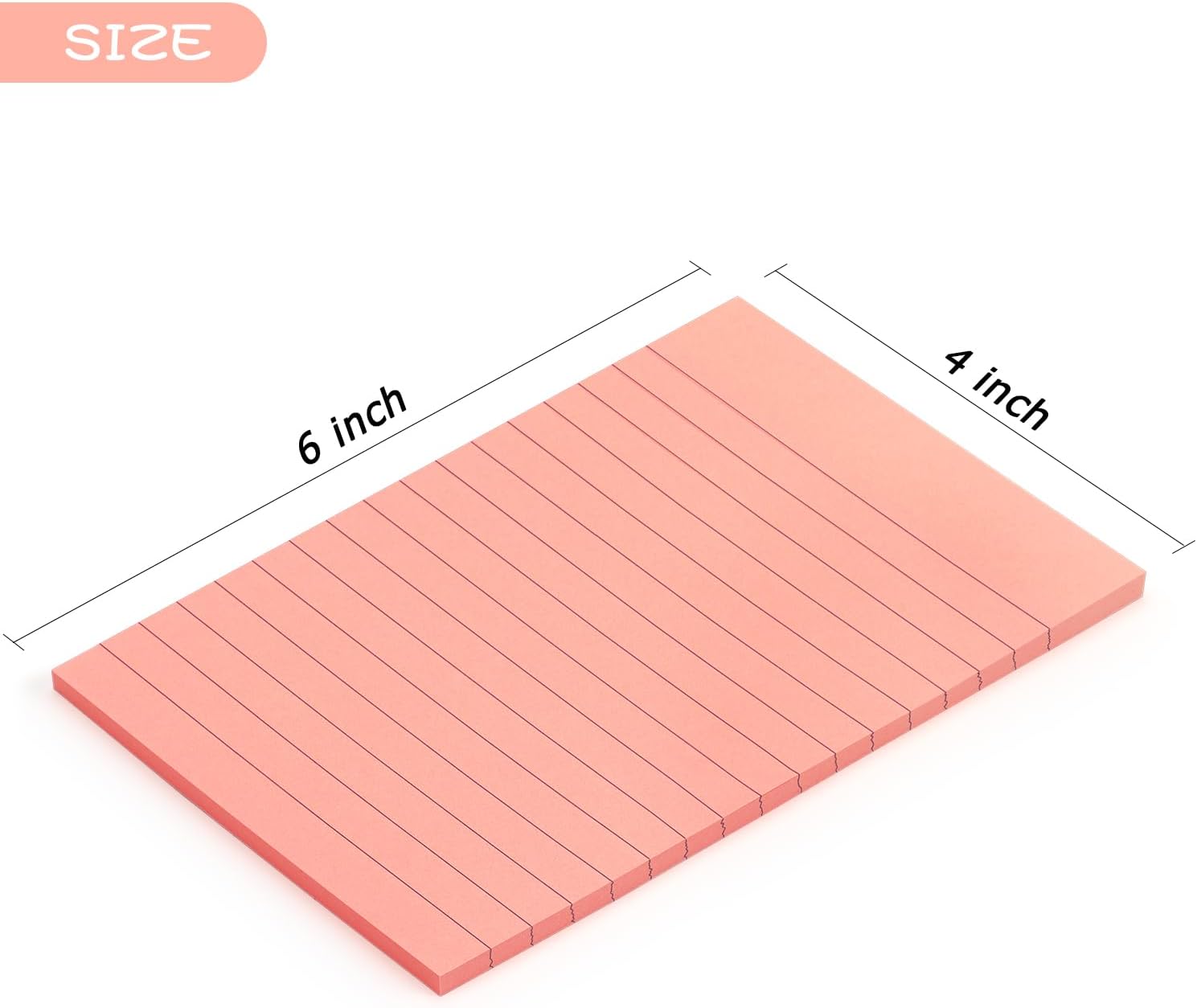 Early Buy 6 Pads Lined Sticky Notes with Lines 4x6 Self-Stick Notes Bright Color Sticky Notes, 45 Sheets/Pad (Pink)