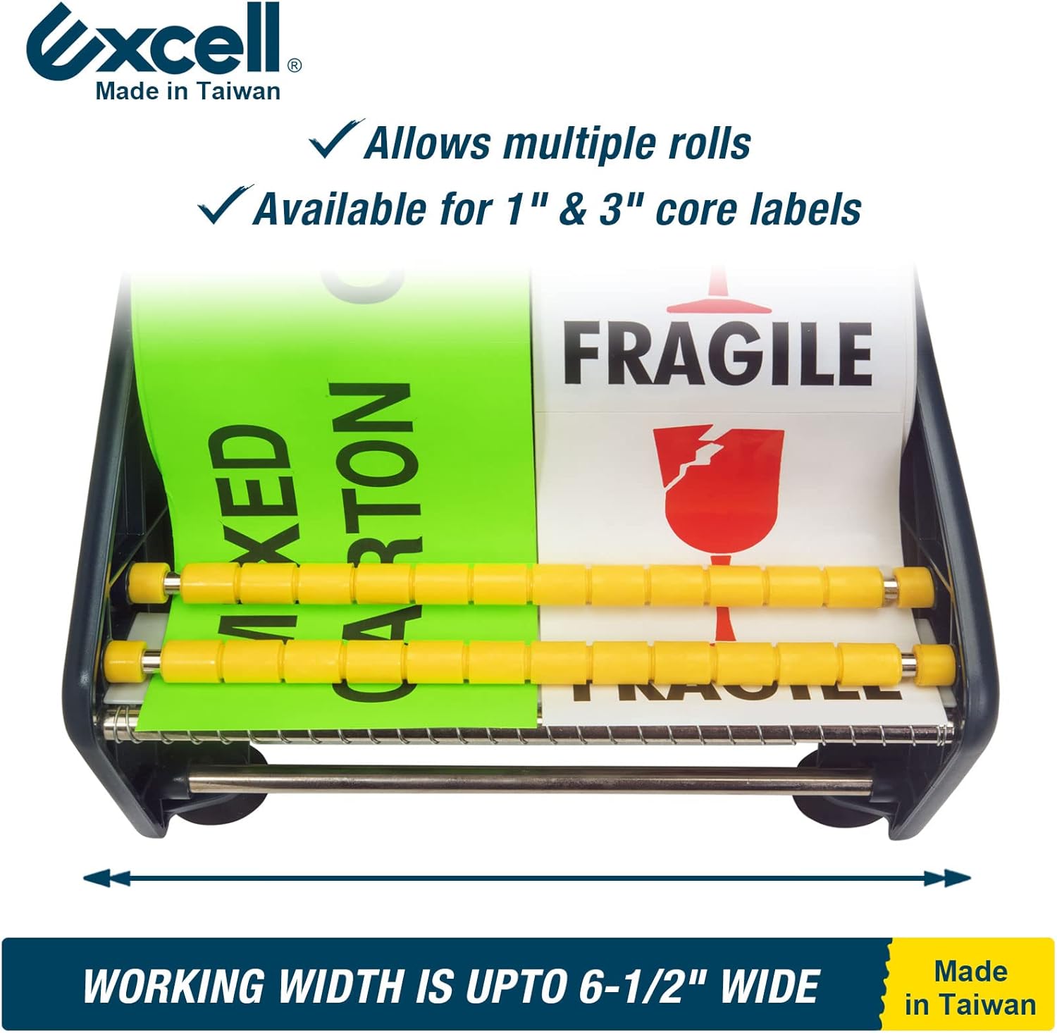 Excell LD-619 Economy Lightweight Table Label Dispenser (6.5 Inch Wide) Adjustable Sticker Roll Holder Dispenser for Home, Office, Retailer Stores and Warehouses Shipping Supplies (6.5 Inch)