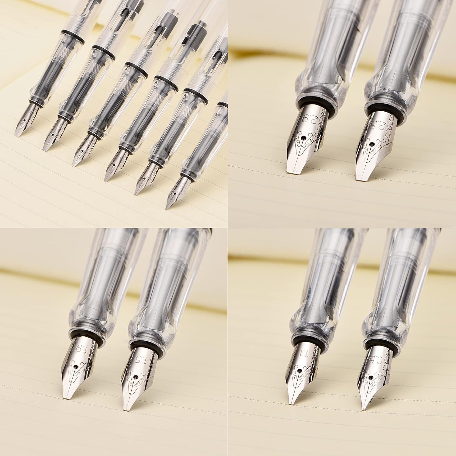 - This calligraphy pen set includes 6 fountain pens with different size nib (0.5mm, 1.1mm, 1.5mm, 1.9mm, 2.5mm and 2.9mm) to meet your all your writing and drawing demand.