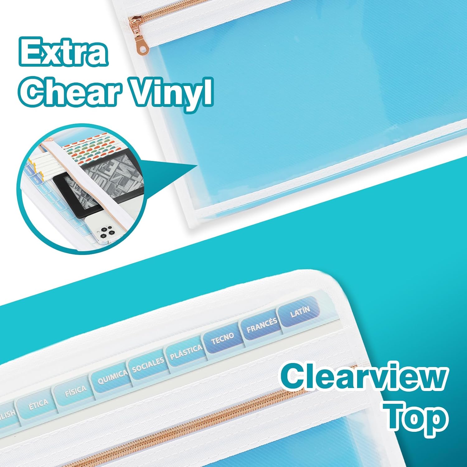- FRONT ZIPPER CLEAR POCKET: A roomy clear pocket with zipper closure added on the front, designed for taking more school office supplies like pens, eraser, calculator, or receipts, invoices papers storage with this expandable file folder organizer