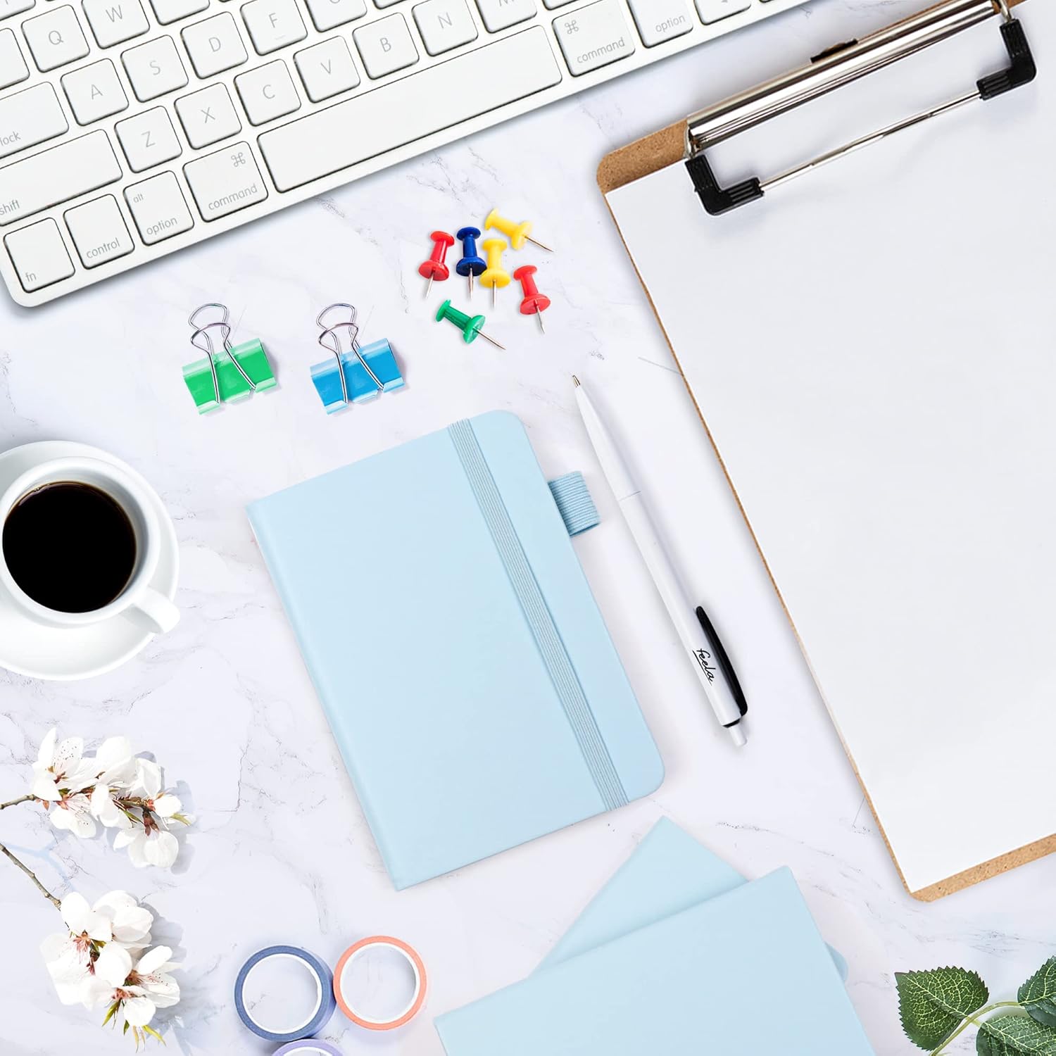 feela 6 Pack Pocket Small Notebooks Bulk, Mini Cute Memo Notepads Hardcover College Ruled Lined Journals with Pen Holder for Women Girls Office School, with 6 Black Pens, 3.5”x 5.5”, A6, Light Blue