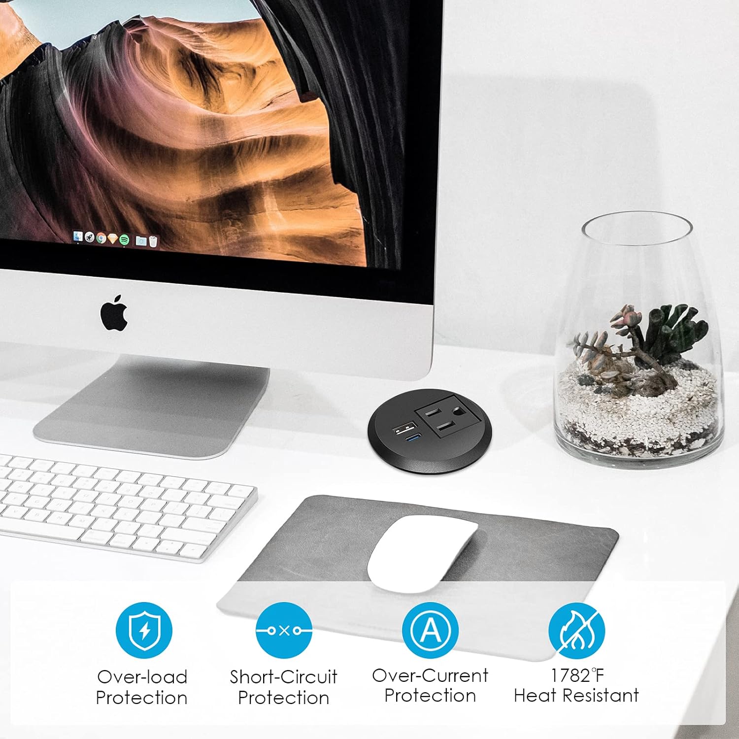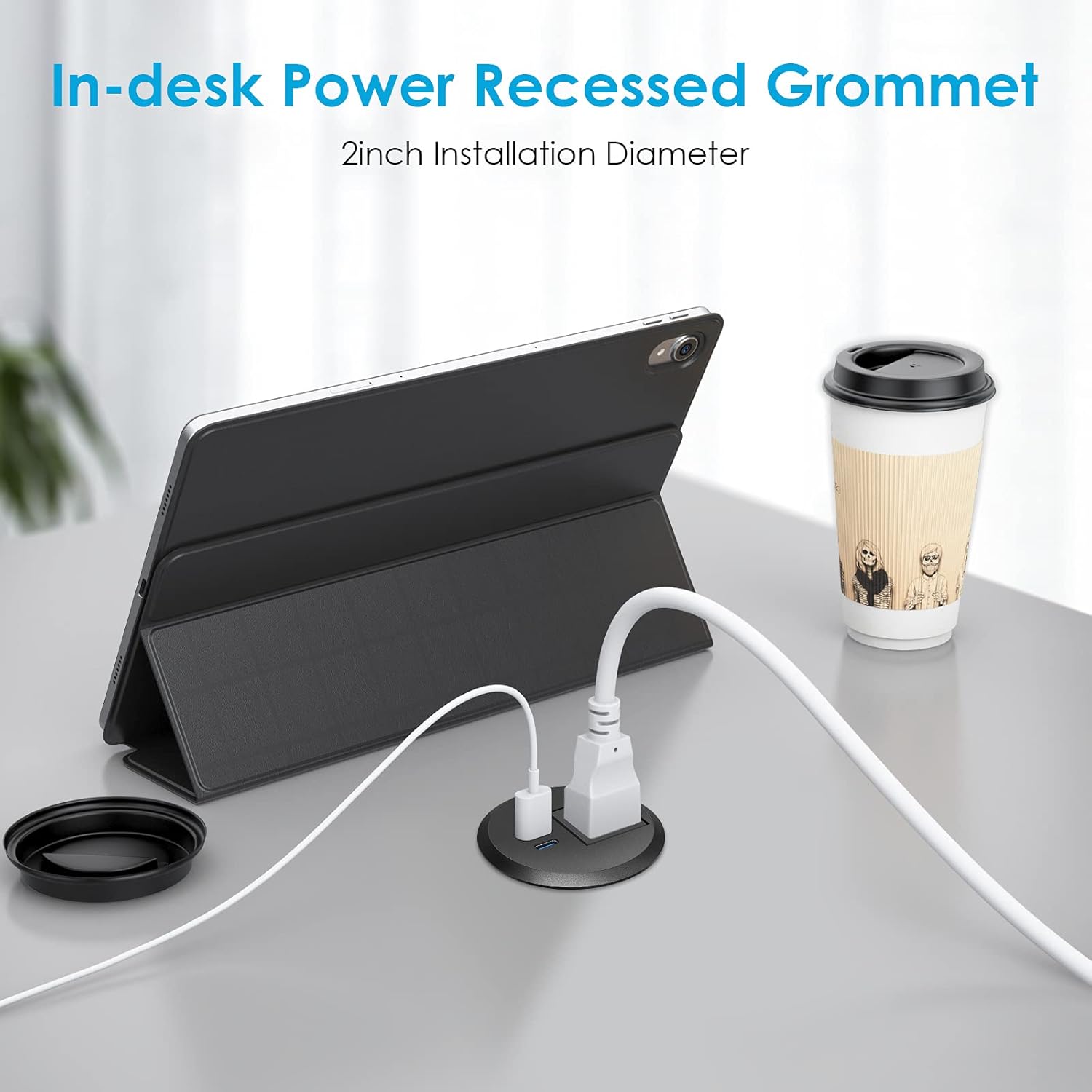 - Easy to Installing:Fits 2 inch Standard Grommet Hole: Make a 2inch hole on the table surface or you can use the existing cable hole on your desk.Then you can insert the power grommet through.