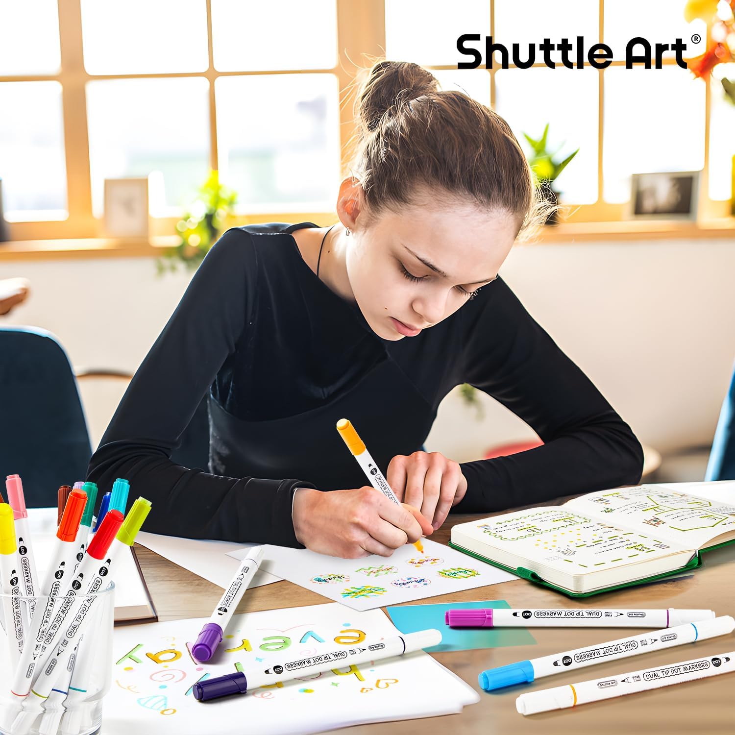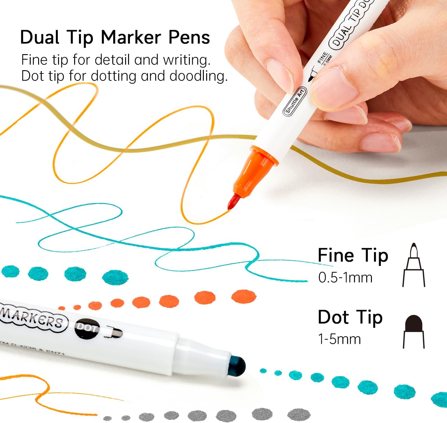 Shuttle Art 18 Colors Dual Tip Dot Marker Pens for Kids Adults, 18 Classic Colors, 0.8mm Fine Tip and Flexible Dot Tip for Journaling, DIY Crafts, Scrapbooks