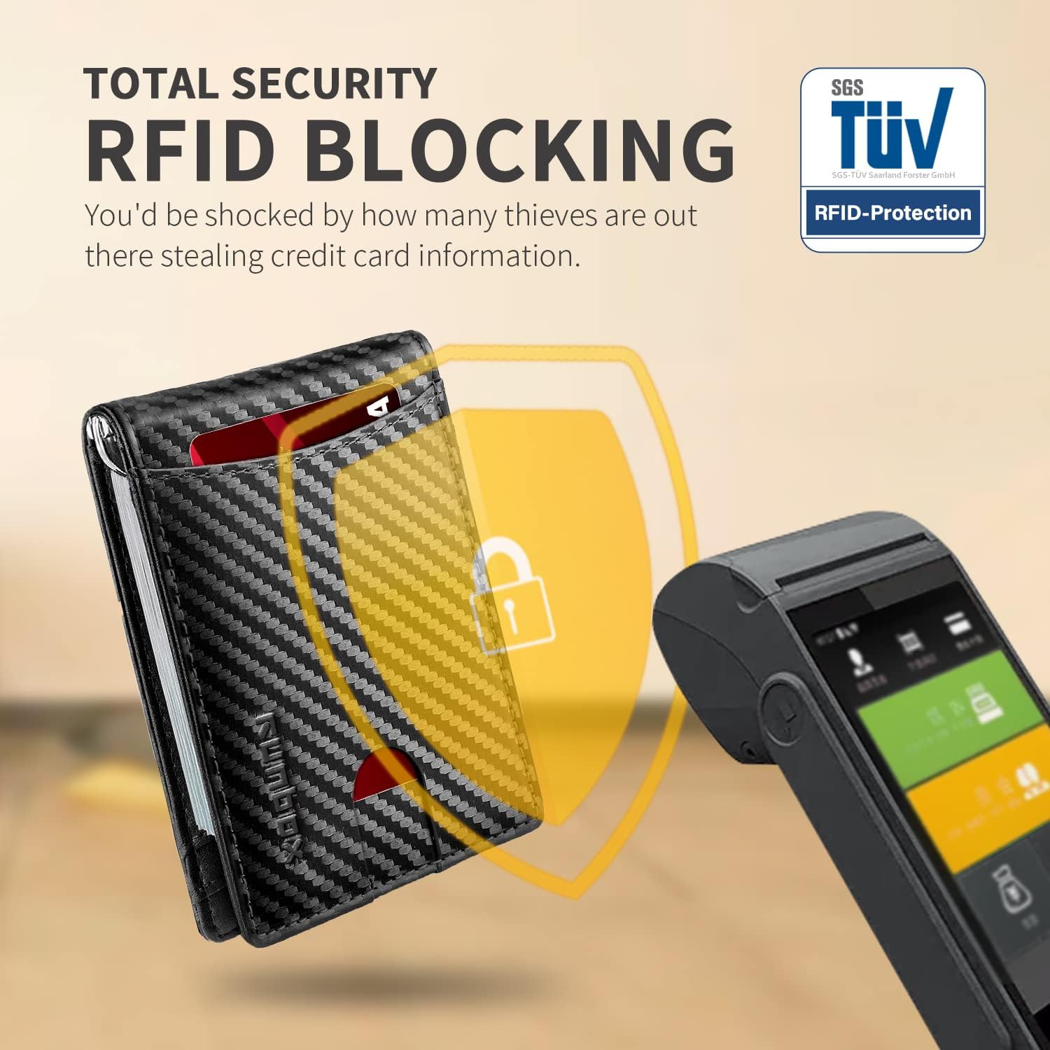 - SAFETY. PRIVACY. SECURITY - RUNOBX wallets for men are equipped with RFID SECURE Technology from German, a unique metal composite, engineered specifically to block 13.56 MHz or higher RFID signals. Protect the your valuable information stored on RFID chips from unauthorized scans!