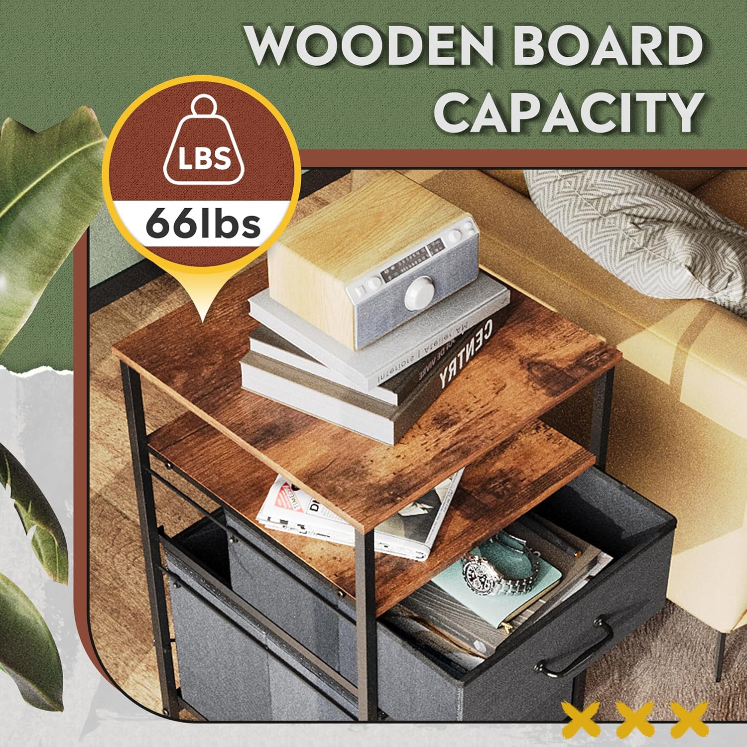 DEVAISE 2 Drawer Mobile File Cabinet, Rolling Printer Stand with Open Storage Shelf, Fabric Vertical Filing Cabinet fits A4 or Letter Size for Home Office, Rustic Brown