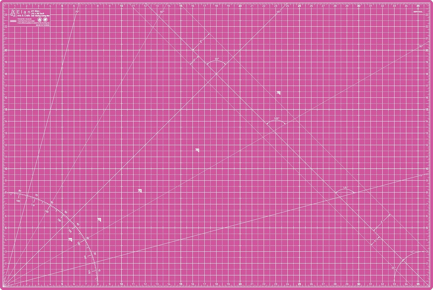 - COLOR & SIZE - Elan 24x36 cutting mat has two colors. This hobby mat is pink on one side and purple on the other. Elan hobby cutting mat is available with an imperial grid for sizes 36x48, 24x36, 18x24, 12x18, 9x12 inch.