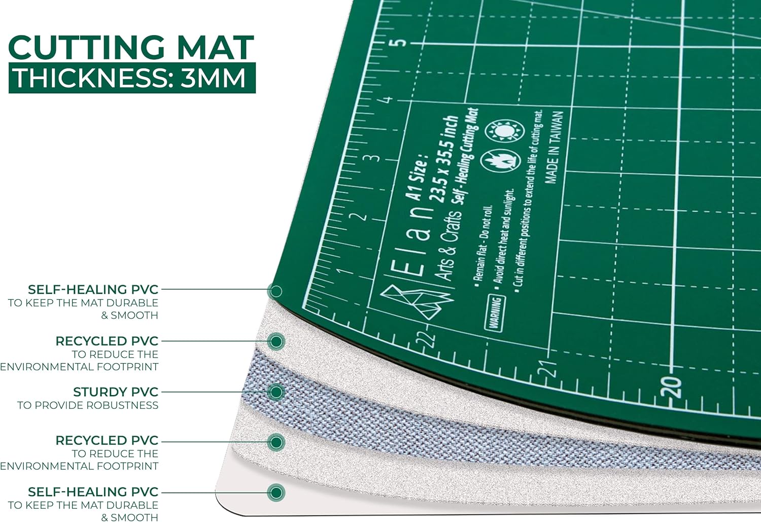 - PROTECT YOUR FURNITURE - The Elan A1 cutting mat with imperial grid is ideal to use as cutting board for sewing or cutting board for crafts. This large cutting mat is self-healing and is also used as a quilting mat, fabric cutting board, modeling mat, or craft cutting board.