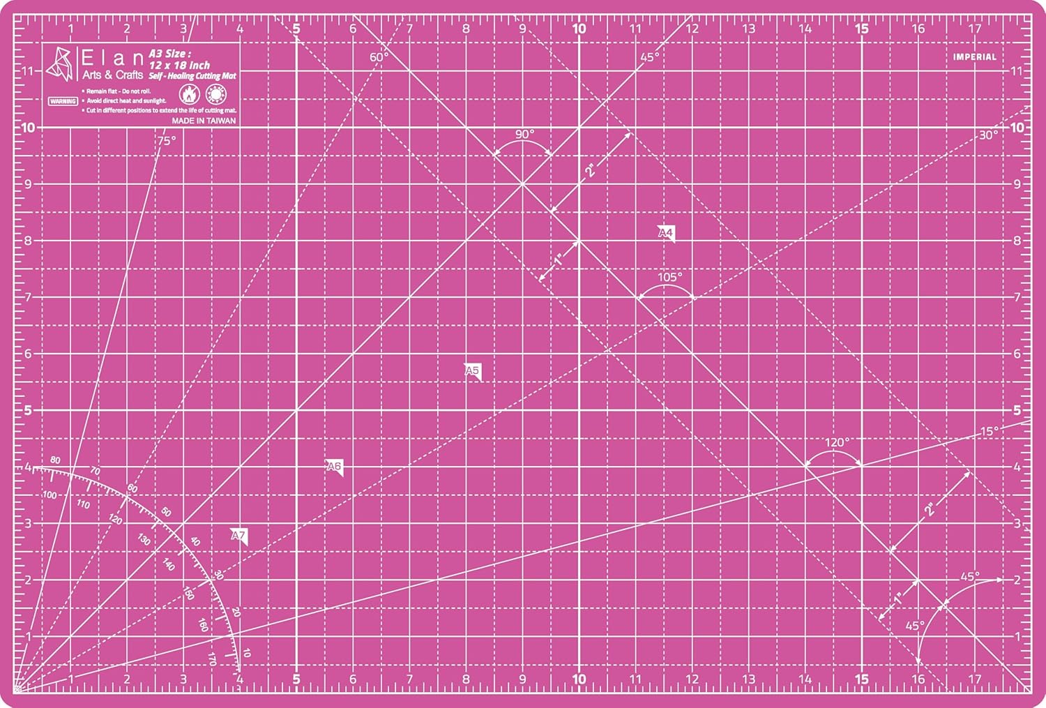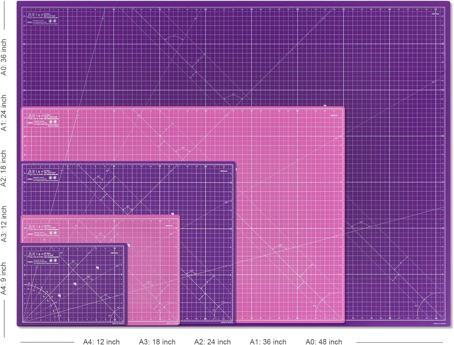 - COLOR & SIZE - Elan 12x18 cutting mat has two colors. This hobby mat is pink on one side and purple on the other. Elan hobby cutting mat is available with an imperial grid for sizes 36x48, 24x36, 18x24, 12x18, 9x12 inch.