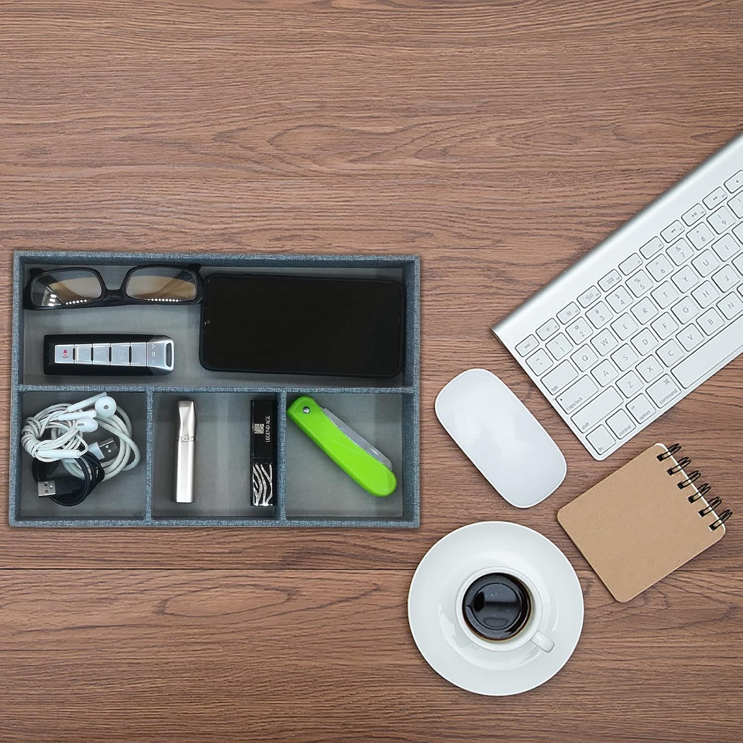 - [Perfect design] 4 compartments, better classification and protection of accessories. The right size will not take up your extra space. Therefore, you donβt need to waste a lot of time searching for misplaced items. Make your space more tidy and orderly. The perfect daily tray, suitable for your desk, bedside table, dressing table, entrance hall, side table, etc.