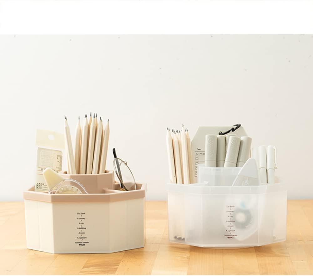 - ✎360 Degree Revolving Design: Simply spin this pencil holder to store or take out your things, this storage organizer allows you to keep all of your things within reach. Our office plastic desk organizer with divided 5 compartments that will organize pens, pencils, , ruler, clips, scissors and other office accessories separately