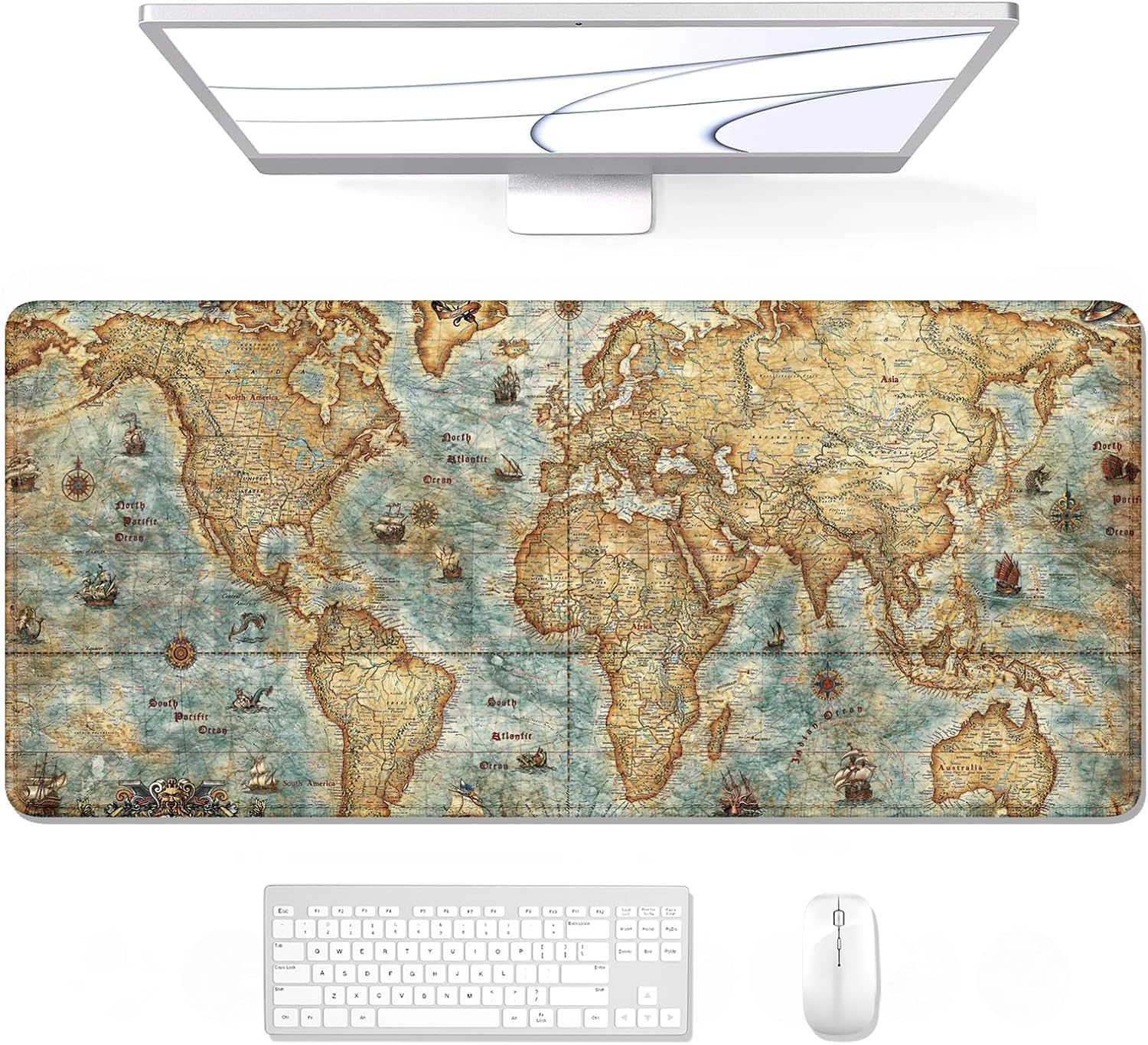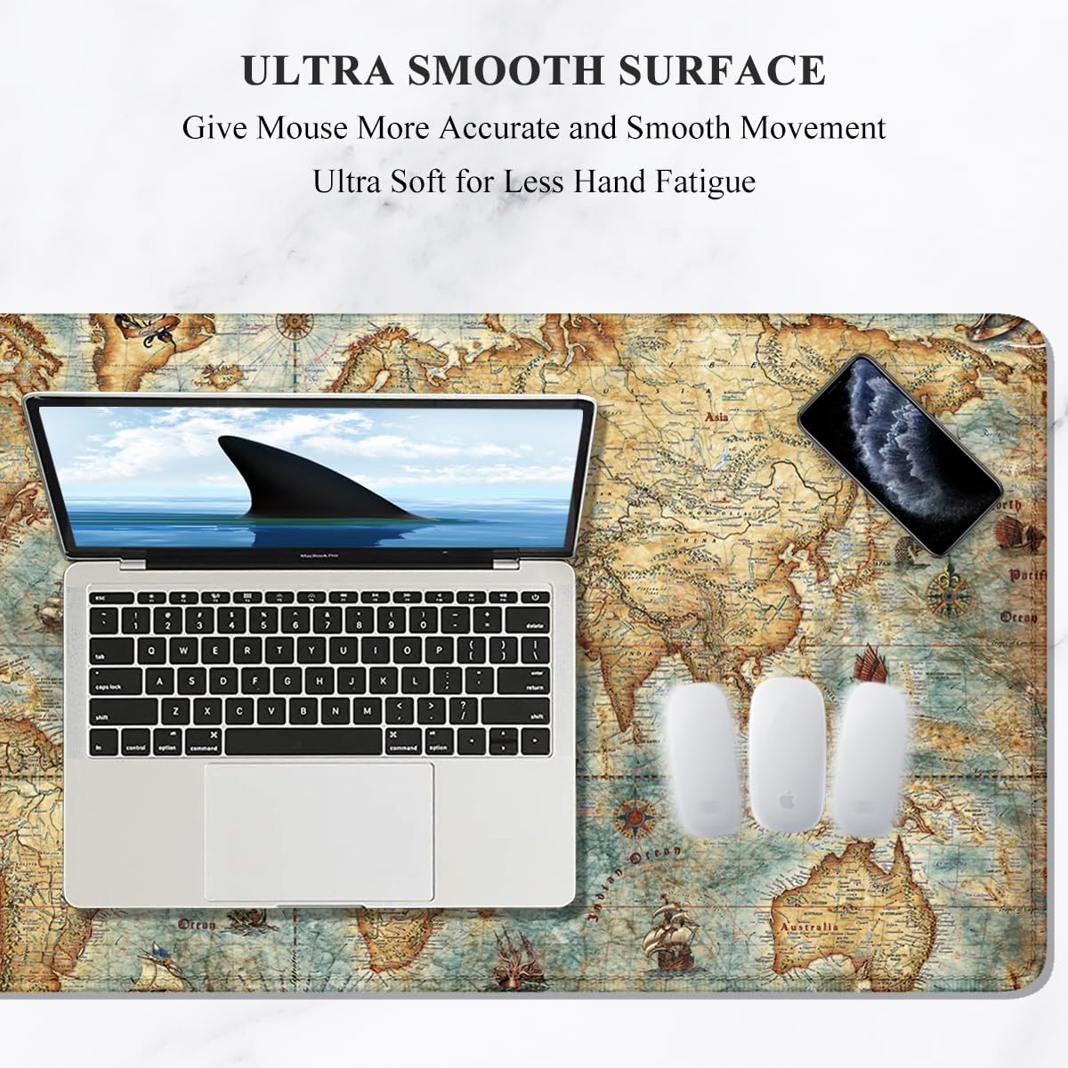 Auhoahsil Large Mouse Pad, XXL Gaming Mousepad, Desk Mat for Desktop, Thick Rubber, Big & Long Size, Stitched Edges, Full Desk Pad for Laptop & Computer, Extended 31.5 x 11.8 in, Vintage World Map