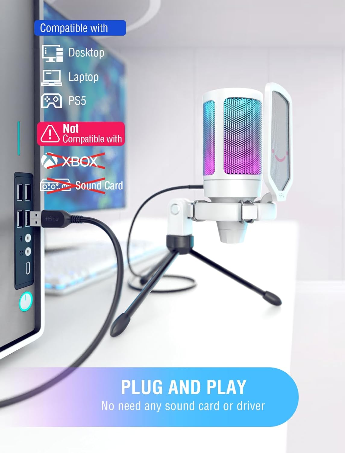 - Simple but Special-The white computer microphone coating is elegant and concise. Vivid RGB works together with gaming accessories to create a special streaming or gaming aura. The microphone for PC gives your audience a clean and uncommon live or video picture.