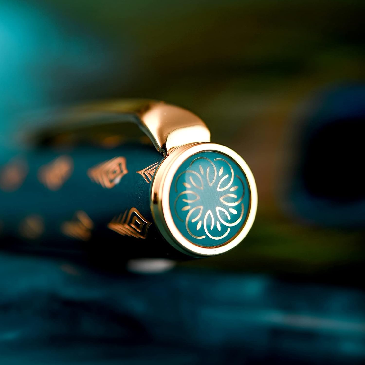 - ā Balance and Elegant- Designed to be well balanced, it is made of high quality resin. The cap was engraved with 24K Gold Plated Peacock Pattern. Designed as a left and right hand fountain pen.
