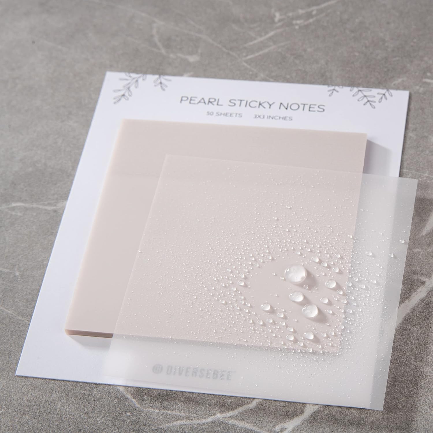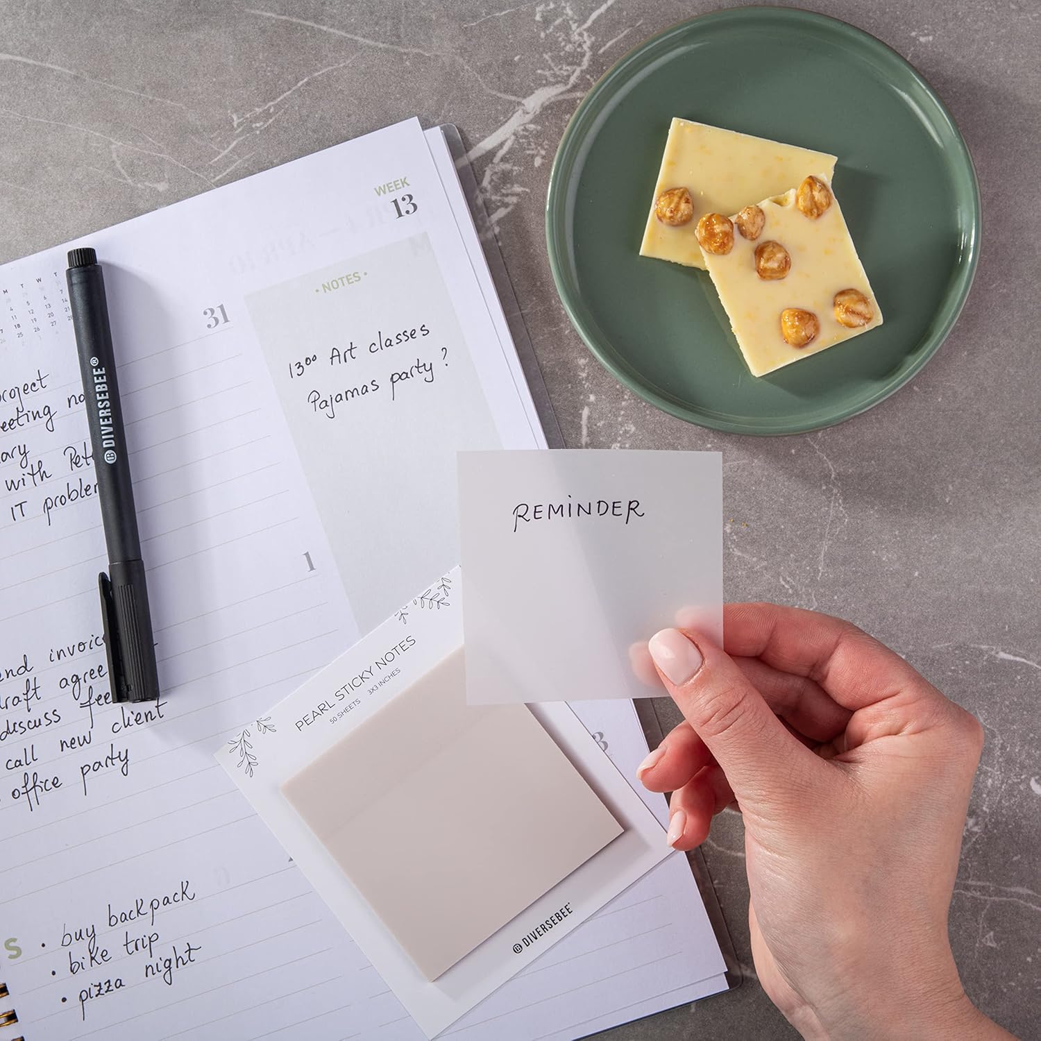 DiverseBee 50 Sheets Pastel Transparent Sticky Notes, 3x3” Clear Sticky Tabs, Translucent Page Flags Book Markers Stickers, Planner Accessories, Bible Journaling Study Office School Supplies (Pearl)