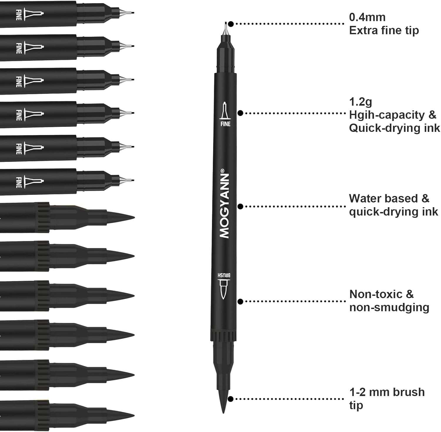 Mogyann Drawing Pens, 12 Pack Dual Brush Pens Black Markers for Art Drawing Sketching