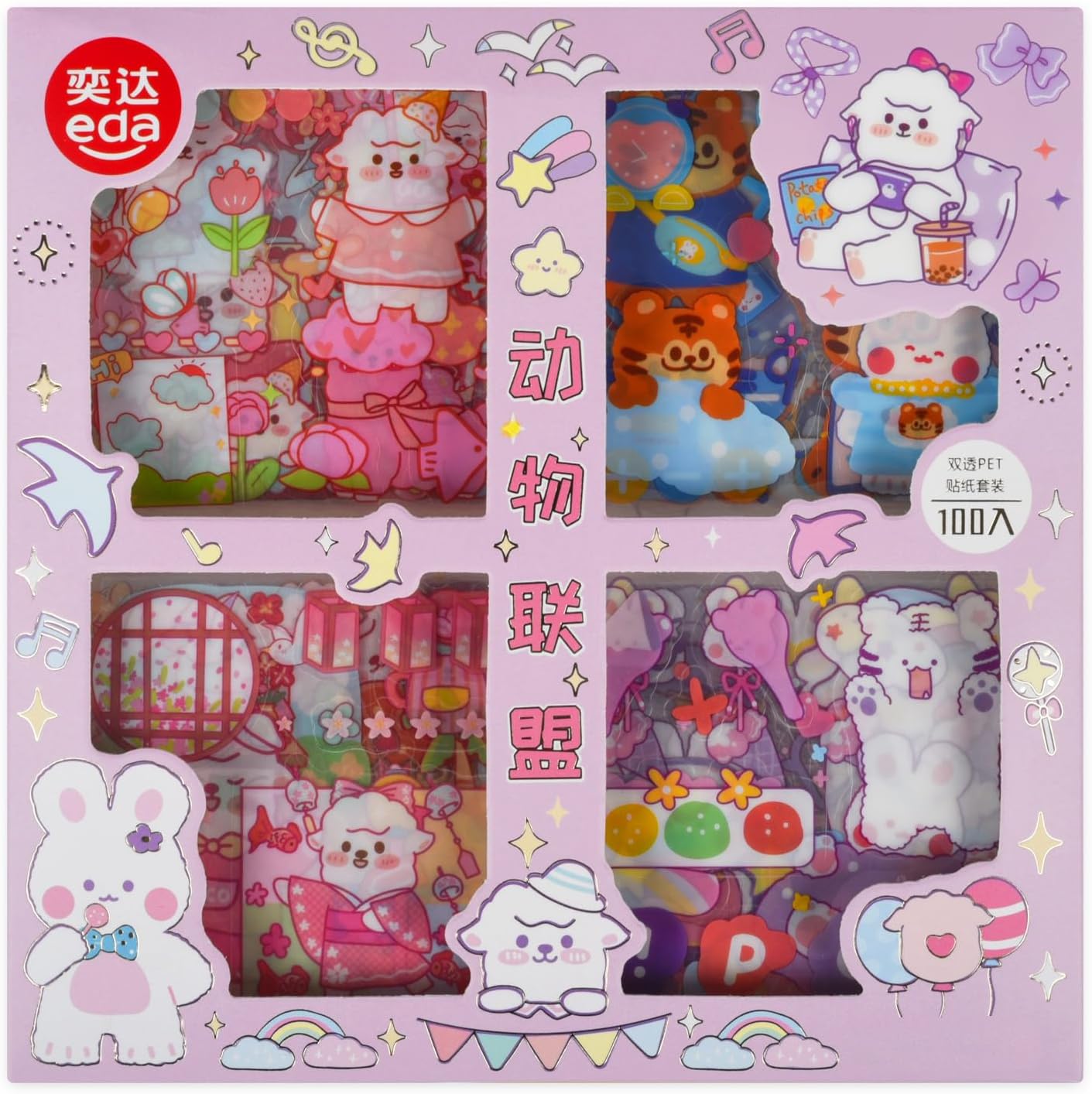 EAMOTOL 100 Sheets PET Decorative Stickers, Cute Waterproof Sticker Set for Scrapbook Diary Bullet Journaling Planner DIY Craft Album Calendar Notebook Laptop Phone Case- Animal Series
