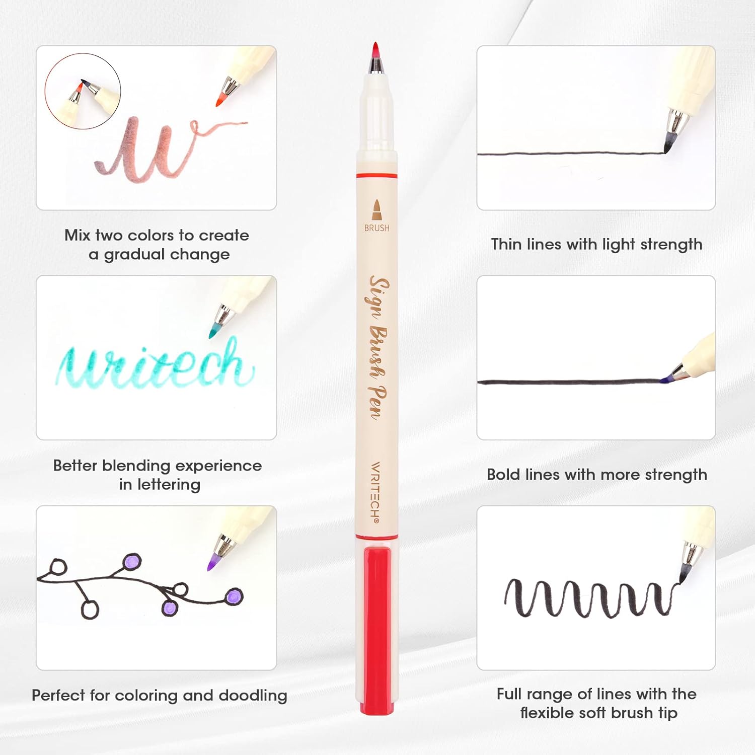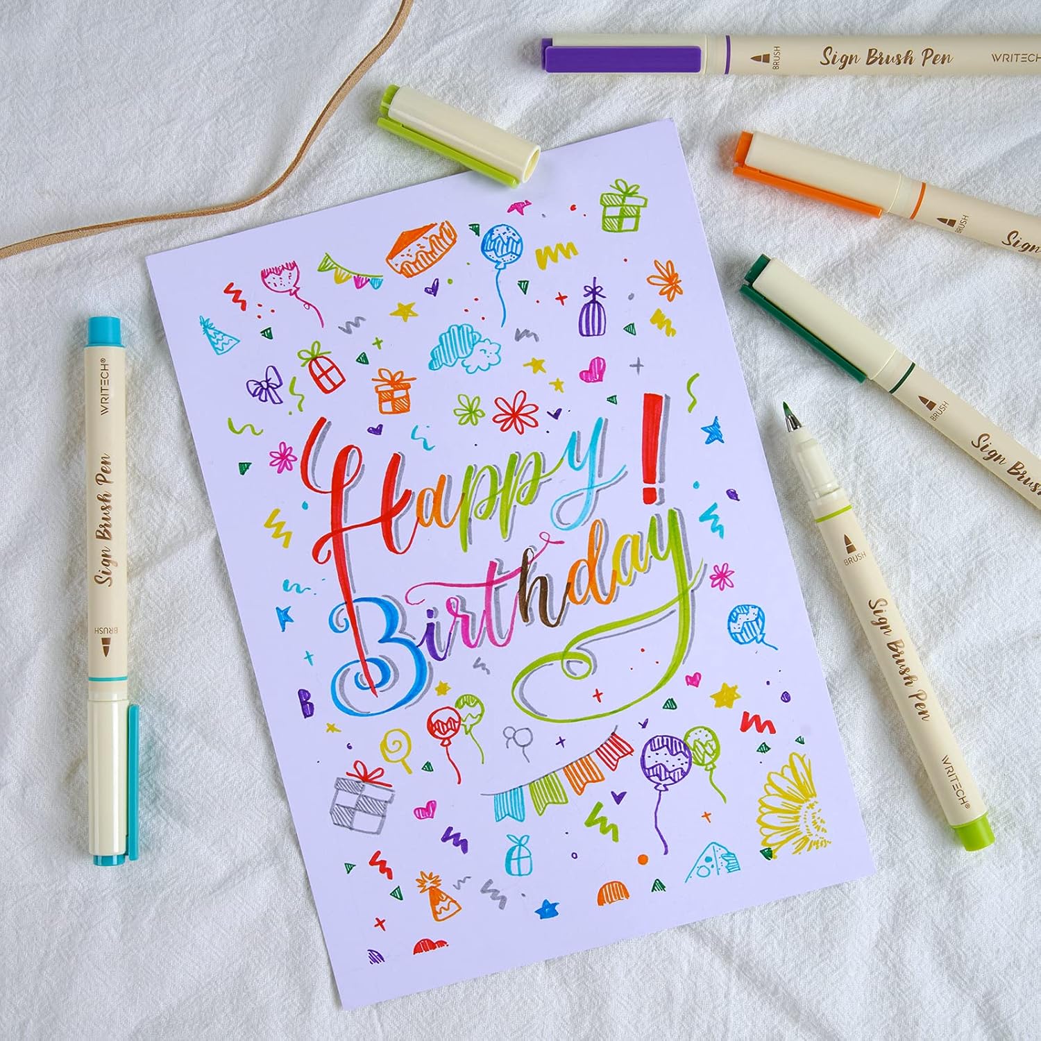 WRITECH Brush Tip Marker Pens: Artist Markers Flexible Tip Water Based 12ct Assorted Colors for Journaling Adult Coloring Hand Lettering Calligraphy Drawing Vibrant Colored